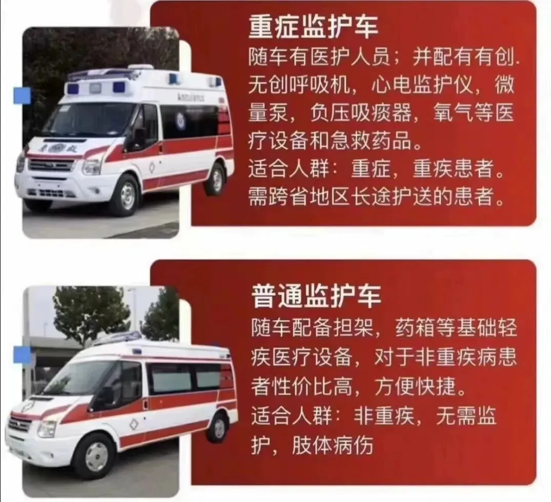 物资与人员:车辆提前调试,配备基础急救设备(担架、氧气瓶、血压计等);重症转运按需安排专业医护人员、呼吸机 / 心电监护仪等高端设备,护送人员提前到位。