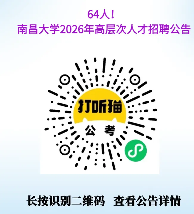 >64人!南昌大学2026年高层次人才招聘公告【南昌招聘】