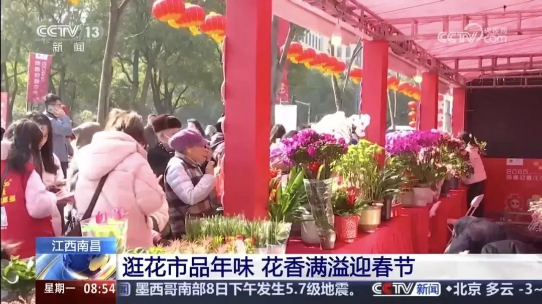 2月9日,央视《朝闻天下》报道:春节将近,花朵飘香,江西南昌2026年迎春花市2月8日热闹开市。花市上不仅汇聚了品种各异的鲜花,更融合了非遗展演、文化体验等活动,市民游客漫步于花香之中,感受浓浓年味。