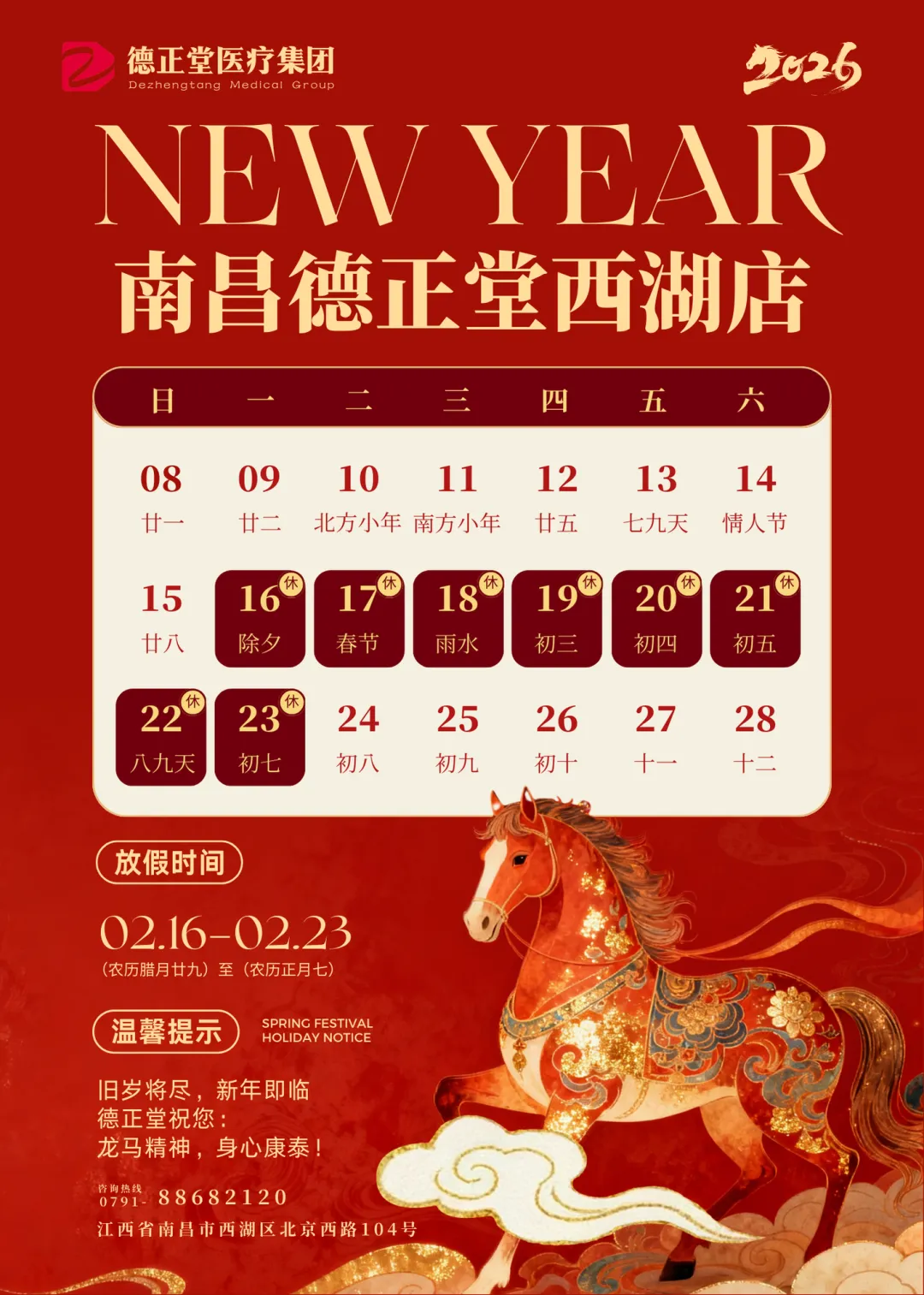 关于德正堂中医南昌区域门店春节门诊放假的通知!