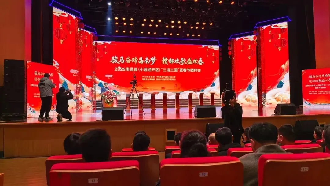 2月9日,“骏马奋蹄昌南梦 赣鄱欢歌盛世春”2026年南昌县(小蓝经开区)“三请三回”暨春节团拜会在昌南文化中心隆重举行。南昌县(上海)商会会长梅建新带队,执行会长谌祖桂,监事长刘为民,常务副会长徐先群、付国强、黄艳平、王金保、姚志鹏、何建华,副会长杨贤皇、龚玉华,会员涂序国组团返乡参会,与省、市、县各级领导,乡友、校友、战友及社会各界代表欢聚一堂,共叙桑梓情谊,共商家乡发展大计,以商会之力架起沪昌协作桥梁,助力昌南高质量发展。