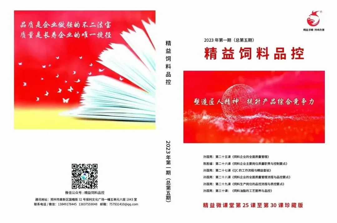 为进一步宣贯精益品控全面质量管理文化推广价值,做精做强饲料品质,提升行业人员综合素养。精益品控定于2026年2月9日下午3点始至2026年2月28日下午5点止,对精益品控总第5期图书进行特价优惠活动,原价200元一本图书,特惠价75折优惠150元一本,到期恢复原价,本期图书涵盖“饲料企业的全面质量管理,饲料企业主要岗位(采购、品控、生产、仓储、技术与行政质量职责与控制要点, QC工作流程与精益查验,饲料企业的全面质量管理流程与品控要点,饲料企业生产岗位的品控流程与控制要点(配料、预混、投料、中控、制粒与打包岗位,饲料油脂的工艺营养与品控(豆油、鸭油、猪油)等实用干货知识,全书彩印知识点爆棚,本书不仅是大型饲料企业生产品控培训实用资料,也是中小饲料企业生产品控技术人员落地实战的珍贵学习宝典。订购本书请在群内或者私聊告知,或者添加客服微信订购,京东快递,图书含技术服务类发票电子发票直接发手机。订购电话/微信13837559048