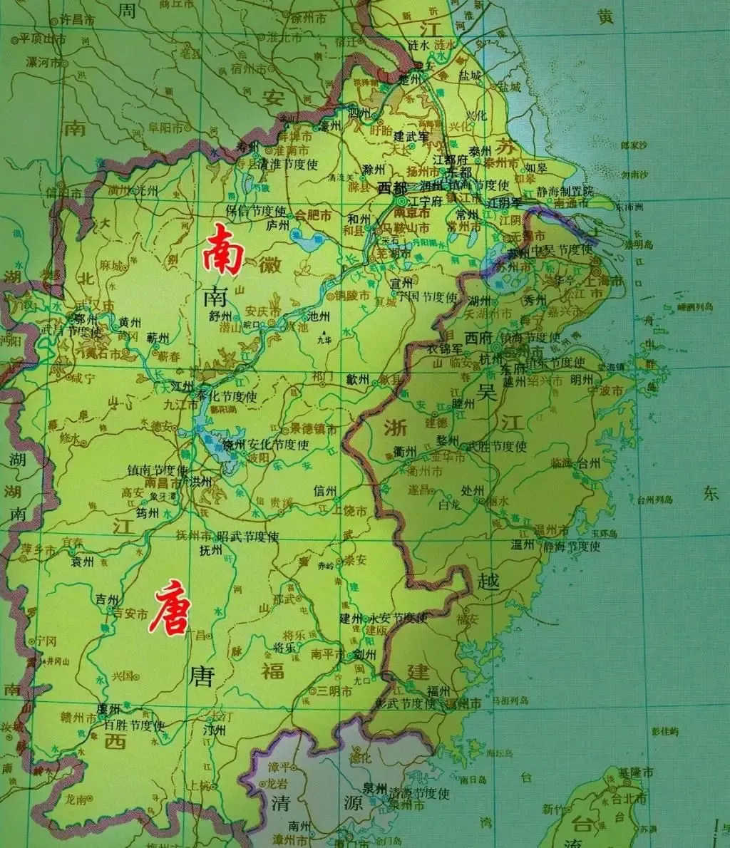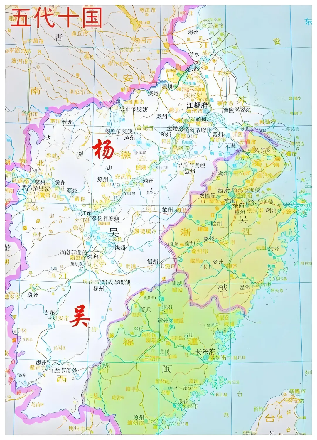 杨吴统辖阶段,天祐三年(906年)杨吴大将周本在象牙潭之战大败抚州军阀危全讽,顺势攻取洪州,钟氏割据终结,洪州归入杨吴版图。杨吴设洪州都团练观察使,统辖洪、吉、抚等七州,又于919年正式建国后将洪州定为镇南军治所,成为其控扼江西的战略核心,《瑞州府志》载杨吴“遣能臣治洪州,修城防、理漕运,固江南西鄙”。▲吴国为五代十国前期南方最强大的政权,