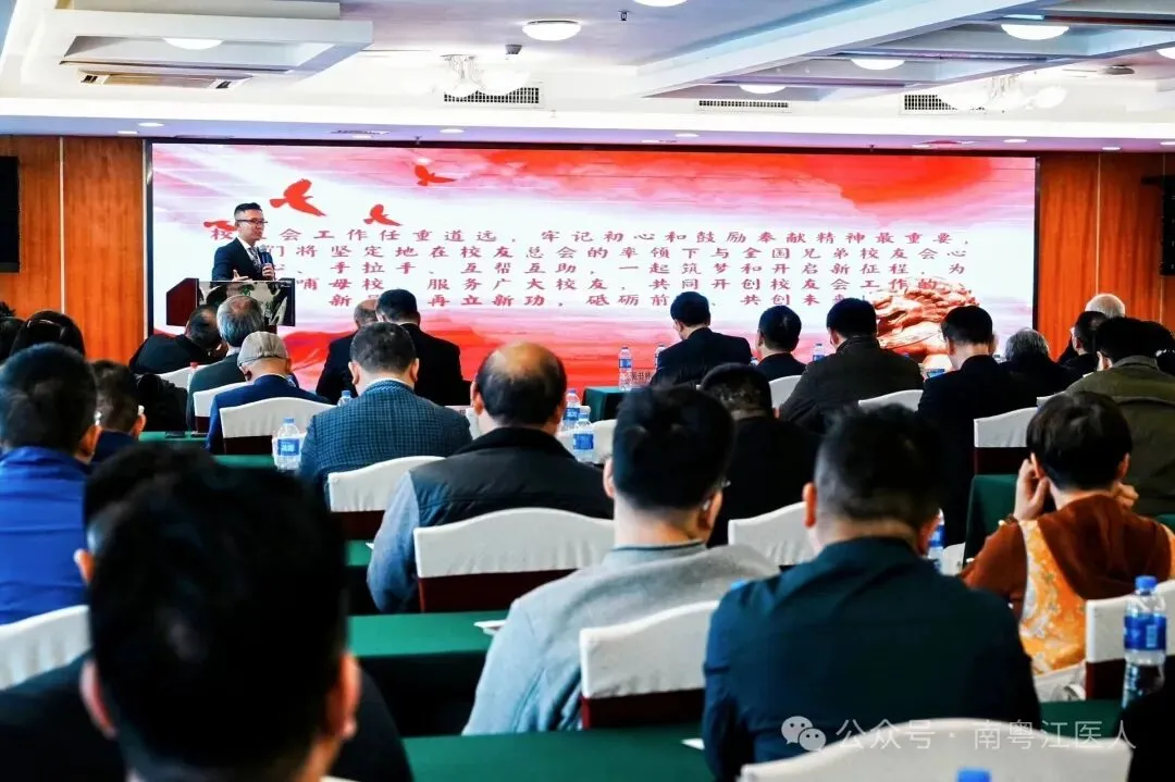 在理事会环节中,会长郭庆禄回顾了从1988年陈安球等老一辈江医人筚路蓝缕、奠基广东校友会,到2023年校友会重新启航,再到2025年扎实耕耘、硕果累累的过程。他特别提到,过去一年校友会活动丰富多彩,在学术科研、社会服务领域更是捷报频传——徐瑞华、曾木圣两位校友荣膺两院院士,成为全体校友的骄傲;捐资助学、回乡义诊等公益行动扎实开展,彰显江医人的社会责任与赤子情怀。面对即将到来的理事会换届,郭会长呼吁全体校友继续关注、支持校友会发展,并郑重承诺:“无论未来谁接过接力棒,我们这些老同志都会一如既往支持校友工作,争取为校友、为母校服务到一百岁!”