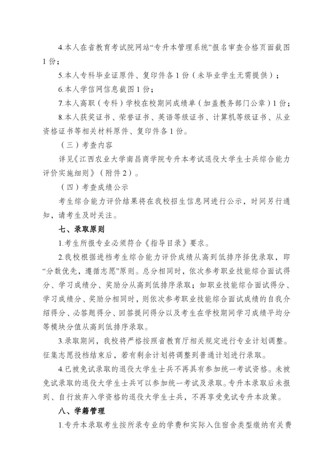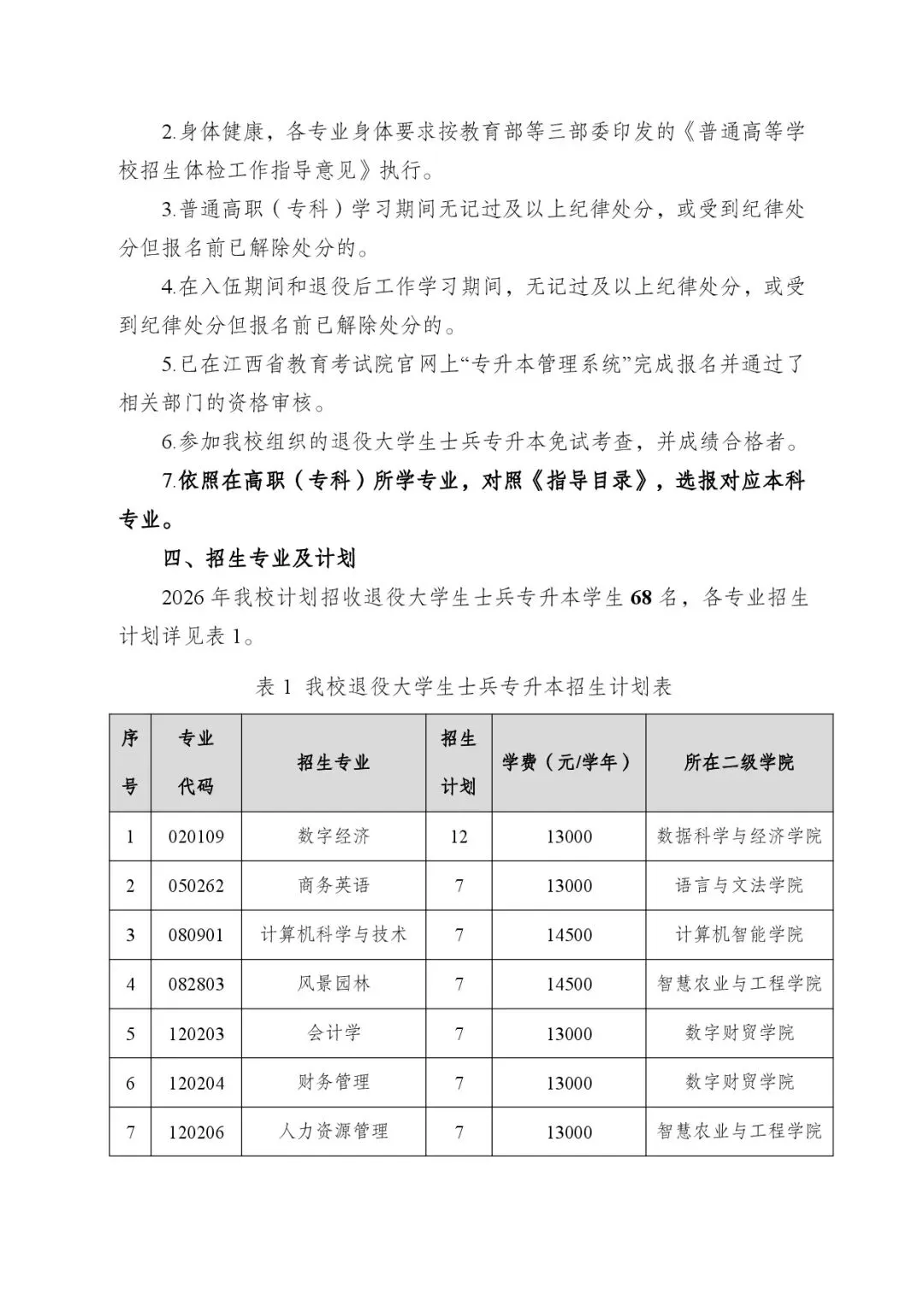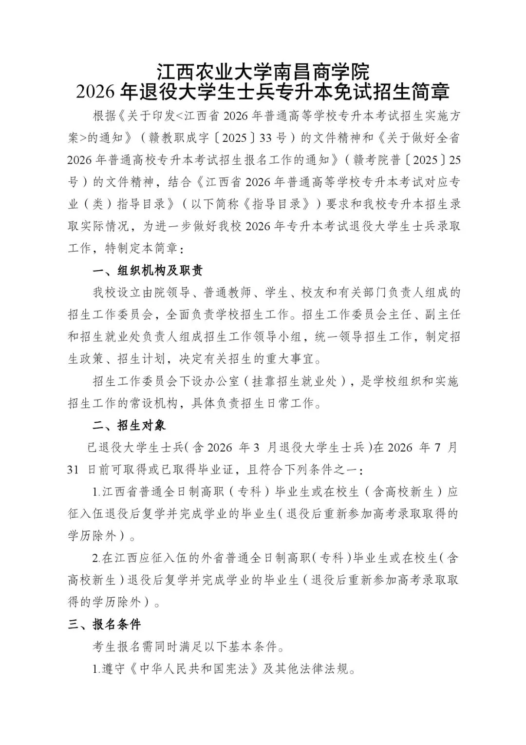 江西农业大学南昌商学院2026年专升本退役大学生士兵免试招生工作简章