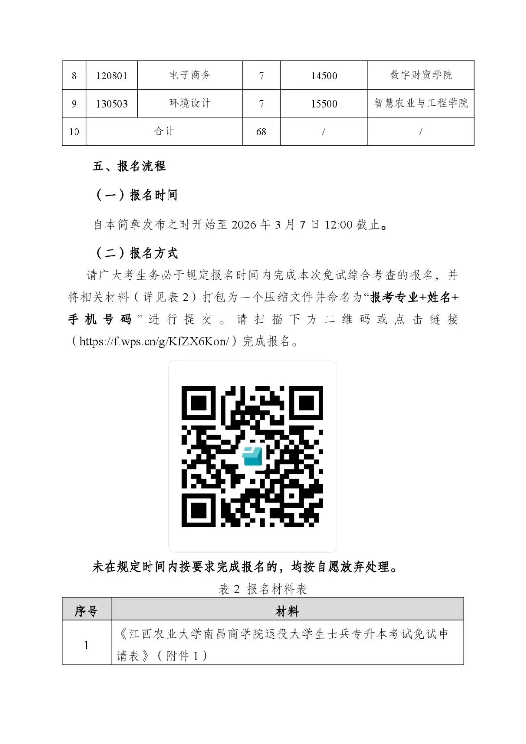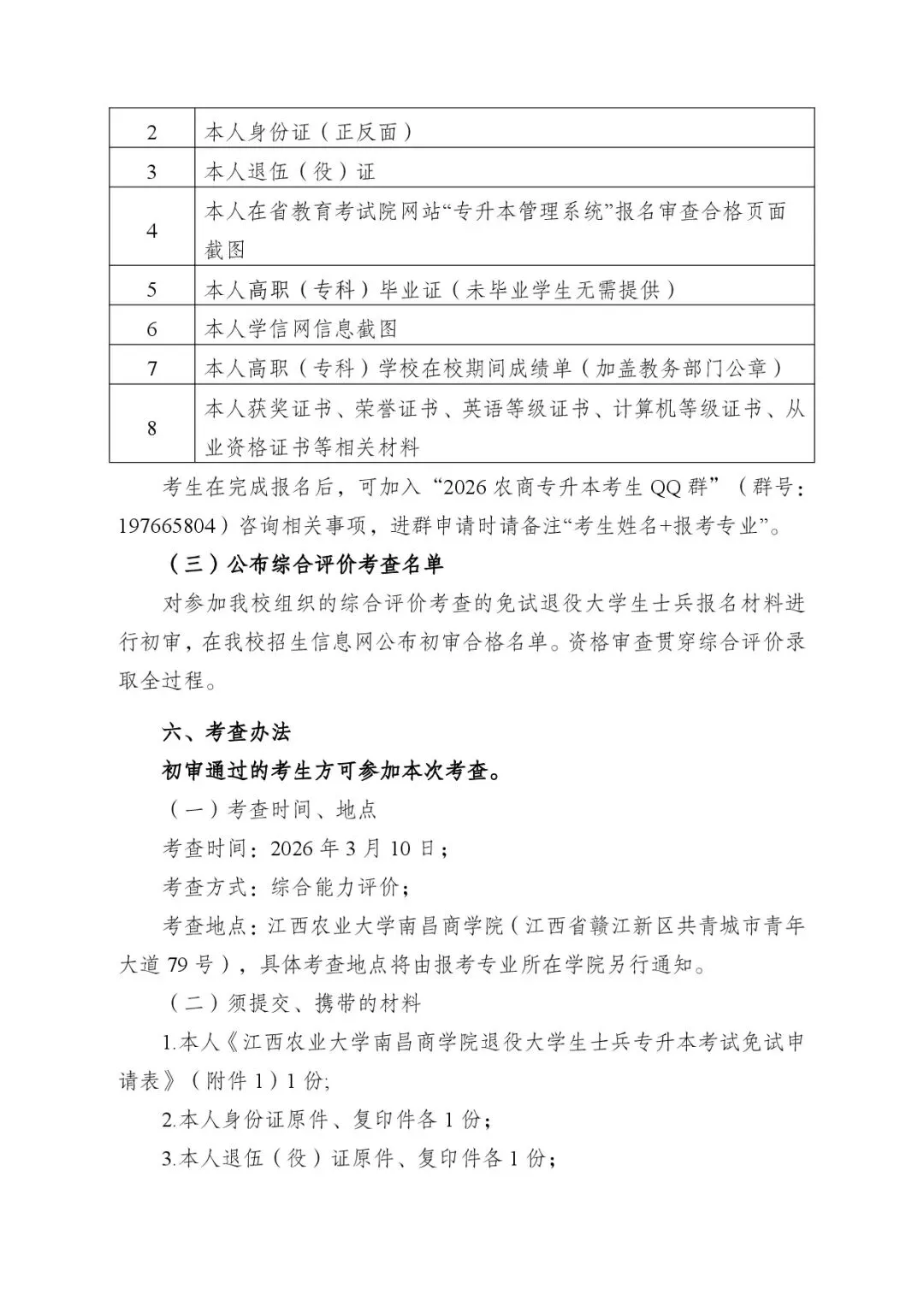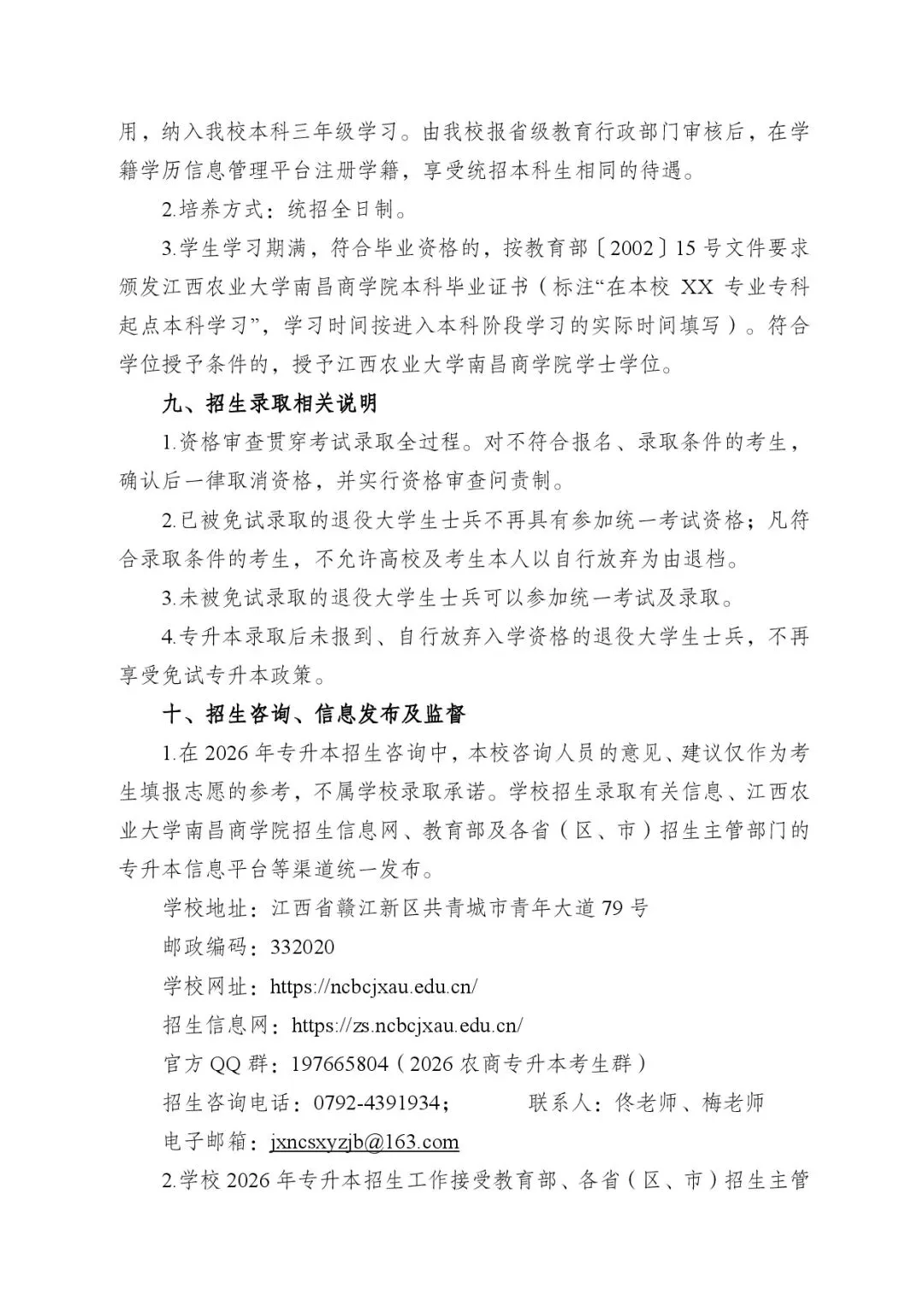 江西农业大学南昌商学院2026年专升本退役大学生士兵免试招生工作简章