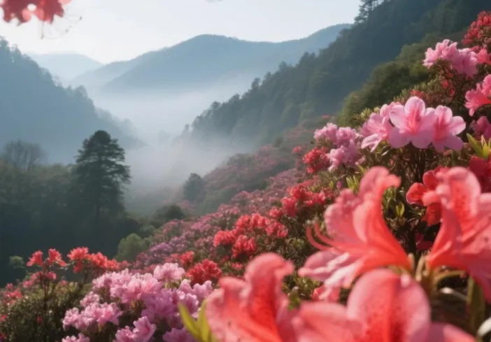 拍照别只盯着雕塑拍。去龙潭看瀑布,光线好的时候能拍出彩虹。或者起个大早,去黄洋界看云海,不用滤镜,那层次感手机直出就够了。最好的季节是春夏之交,杜鹃花开得漫山遍野,或者盛夏来避暑,凉快得让你想穿长袖。雨具随身带,山里的雨,说来就来,不讲道理。
