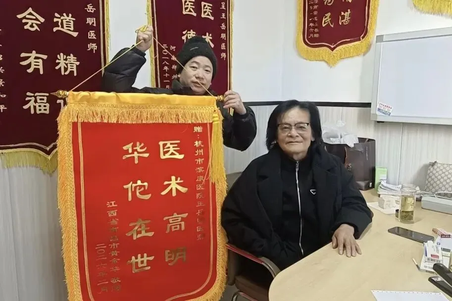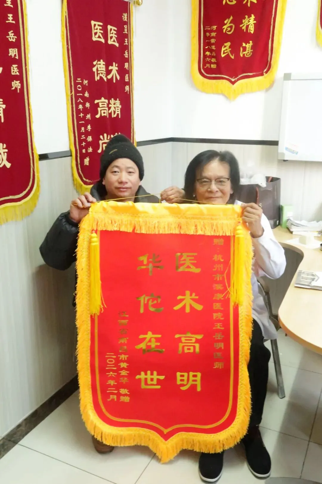 2月9日,杭州宾康医院王岳明医生的诊室暖意涌动,一位专程从南昌赶来的患者家属,将印有“医术高明 华佗在世”的锦旗郑重交到王医生手中,紧握的双手传递着难以言表的感激,言语间尽是真挚的敬佩与谢意,更忍不住竖起大拇指为王医生点赞。