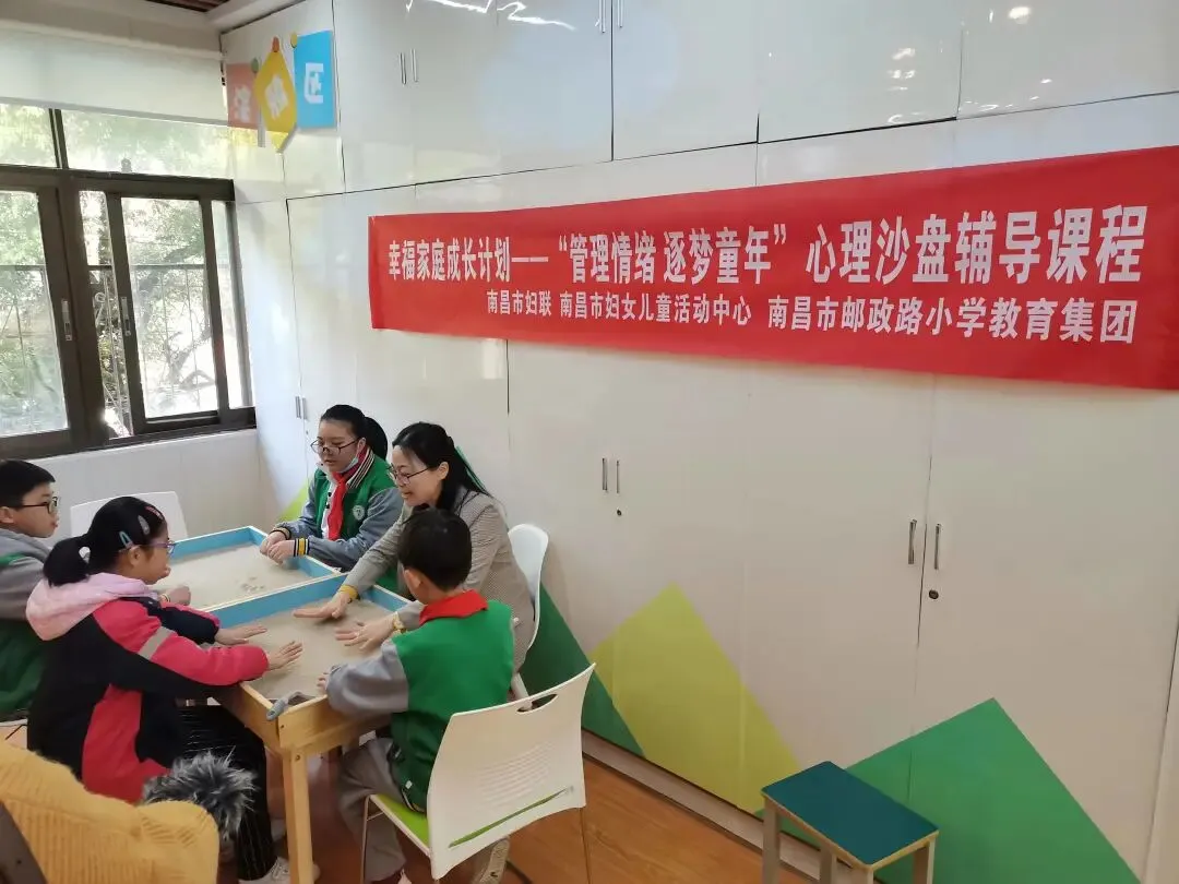 为进一步满足市民家庭教育需求,深化家庭文明建设,健全学校家庭社会协同育人机制,3月24日,由南昌市妇联、南昌市妇女儿童活动中心打造的“六心家园”家庭教育推广计划走进该市邮政路小学教育集团,当天近500名师生及家长共同参加家庭教育心理健康实践基地揭牌活动。在启动仪式现场,邮政路小学450余位三年级学生整齐划一的心理健康手指操震撼全场,柔韧有力的肢体动作彰显着孩子们积极奋发的精神风貌。据悉,“六心家园”家庭教育推广计划将以邮政路小学家庭教育实践基地为试点,汇聚了全市120多名家庭教育指导师、心理咨询师以及教师志愿者,针对儿童心理成长特点及需求,开设人际沟通、情绪管理、挫折教育等28项专题课程,帮助孩子收获健康身心。“六心家园”家庭教育推广计划还将常态化开设专家讲座、家长沙龙、亲子互动等多样活动,满足家长家庭教育指导需求。六心家园家庭教育推广活动今年将覆盖1550个家庭,直接受益人次将达到4650人。 活动中,一场以“团结互助 快乐融合”为主题的心理团辅互动游戏火热开启,学生们在经历“摸石过河”“穿越丛林”“巧夺天工”三重难关和历险的合作游戏之后,明白“单丝不成线,独木不成林”的团结共赢精神。学生们与老师积极互动,获益匪浅,纷纷感叹对个人和班级集体关系有了实实在在的深刻感受。在心理沙盘辅导课程中,老师为学生们创造了安全与保护的空间,帮助他们自由表达心声,在轻松、愉悦、被充分尊重的过程中创造出心中的沙画作品;在心理健康教育课堂上,教师通过游戏设计一步步帮助学生发现自身更多的闪光点,成长为最棒的自己。“引导孩子们倾听自己内心和学会聆听他人想法,让成长之舟在游戏中悄然启航。”六心家园公益教师龚风迎向记者介绍道。亲子团辅活动开展的如火如荼,在“信任之旅”环节,学生们成为戴着眼罩的父母唯一可以信任的“拐杖”,在充满未知的旅程中携手相伴,加强情感沟通,提升信任感。“妈妈戴上眼罩之后所有的行动只能相信我的指令,生活里都是她照顾我,但这次我需要成为她的依靠,为她躲避障碍和危险。”来自五年级二班的熊予涵在课程结束后和妈妈在便利贴上写下了对彼此的爱与祝福。