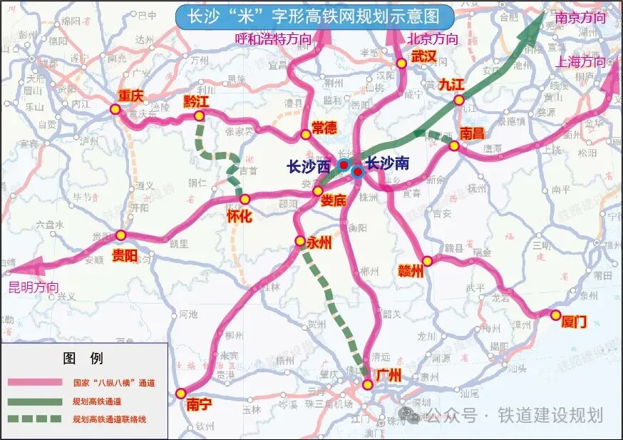 湖南的情况是,纵横通道基本齐全,以自身为枢纽的“米”字形高铁网已成规模。