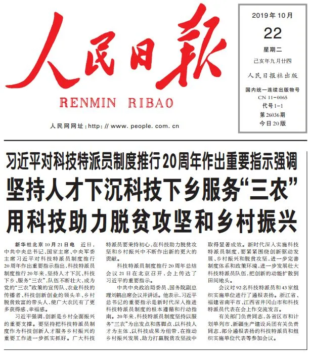 科技特派员深入农业农村一线,倾情服务“三农”,为推动我国农业强、农村美、农民富提供了有力科技支撑和智力支持;认真履行工作职责,宣传党的“三农”政策、传播农业科学技术、引领创新创业、带动乡村脱贫致富,把论文真正写在了祖国大地上。