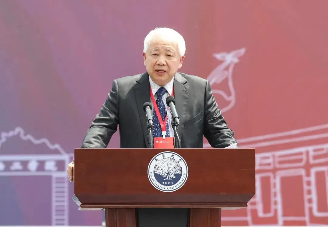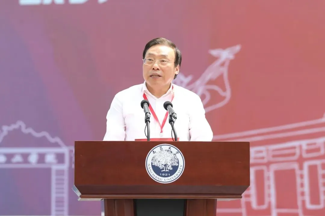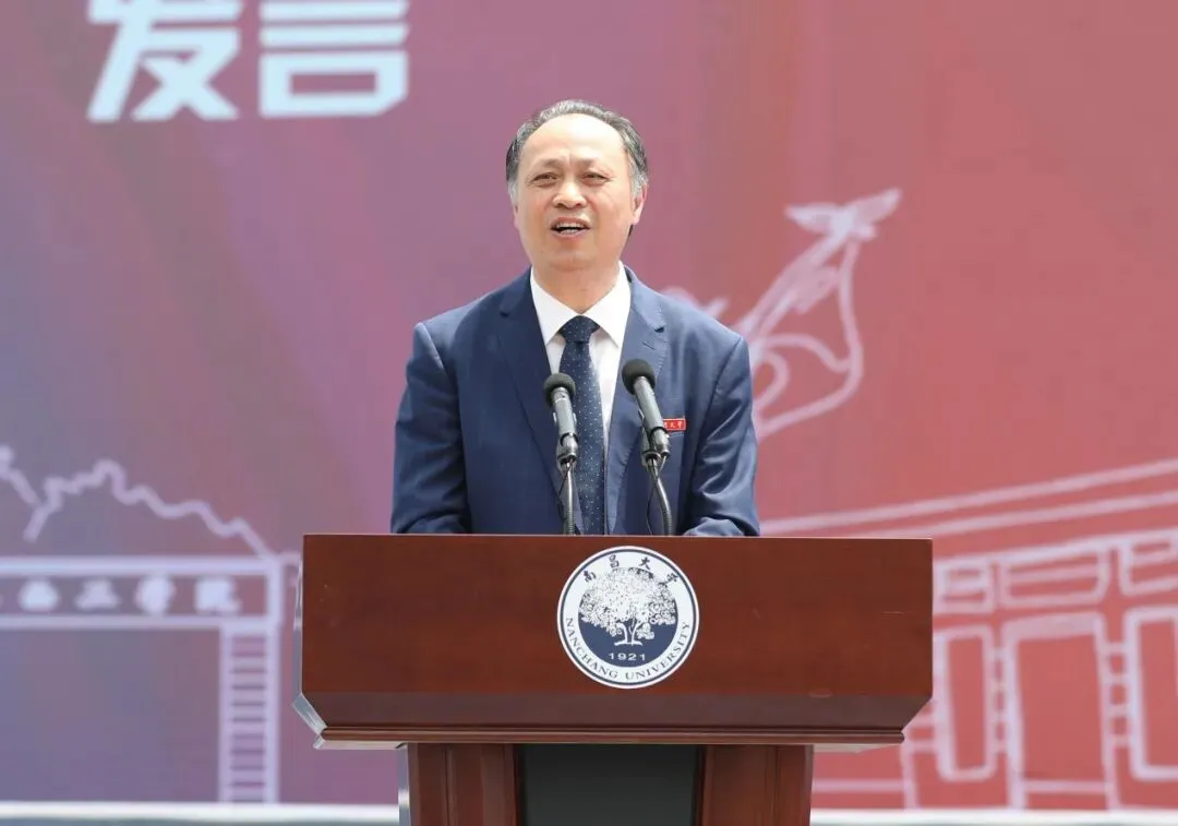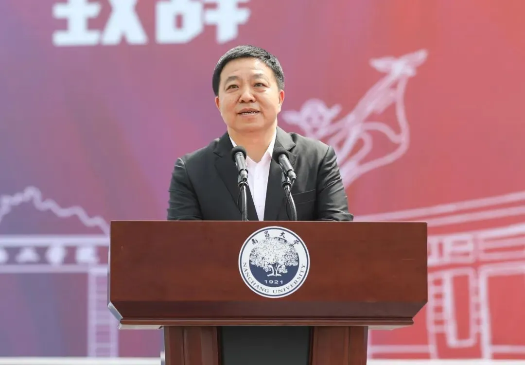 校长周创兵作题为《爱国、自强、创新、唯实 栉风沐雨一百年 砥砺奋进新征程》的致辞。他深情回顾了南昌大学100年的发展历程,描绘了南昌大学未来的发展愿景。他指出,学校发展壮大的每一个进步无不凝聚着党和国家的关心关怀,教育部、江西省委省政府的正确领导,教育厅等省直单位和南昌市的鼎力支持。一百年来,历代南昌大学人不忘办学初心,牢记育人使命,形成了“爱国、自强、创新、唯实”的大学精神。回望学校百年奋斗历程,南昌大学人培育了“明德至善、树人兴邦”的爱国情怀,“百折不挠、艰苦奋斗”的自强品格,“实事求是、敢为人先”的创新精神,“勤勉严谨、明辨笃行”的唯实学风。展望未来,全校教职员工要坚守为党育人、为国育才的初心使命,坚持在国家“双一流”建设中勇争先的工作定位,强化科技自立自强、提升服务经济社会发展的贡献度,实施人才强校、特色创新、产教融合三大发展战略,提升“高层次、实质性和可持续”的国际交流与合作新境界,永葆“闯”的精神、“创”的劲头、“干”的作风,开启创建具有江西底色、中国特色的世界一流大学新征程,为建设社会主义现代化国家、实现中华民族伟大复兴的中国梦作出新的更大贡献。