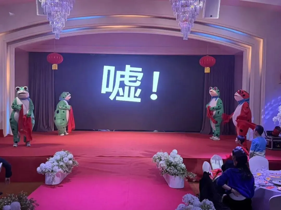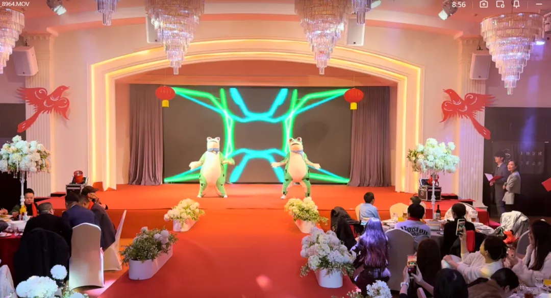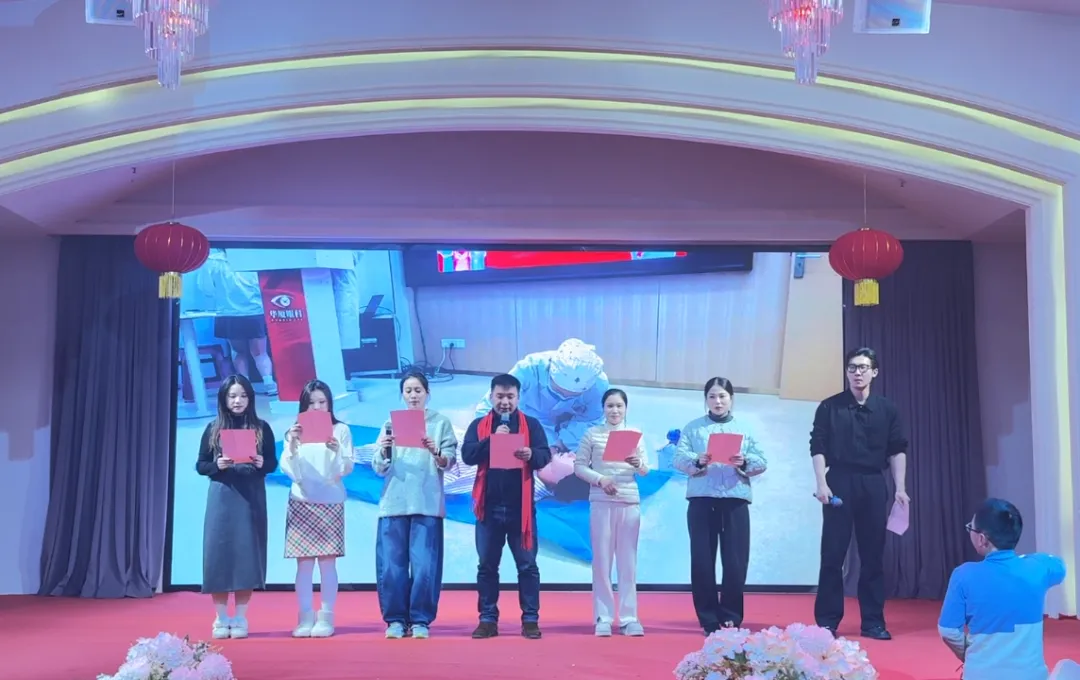 财务部全体成员带来的歌舞《新年顶呱呱》,活力四射,瞬间点燃全场热情;李艳艳女士一曲《又见炊烟》,歌声婉转动人,引人遐思。王静女士与屈光回员共舞的《Something》节奏感十足,魅力非凡;视光部全员上阵的歌舞《我会一直顺》,寄寓了对未来的美好祝愿;住院部带来的创意舞蹈《蛙贵人》,趣味横生,笑声不断。