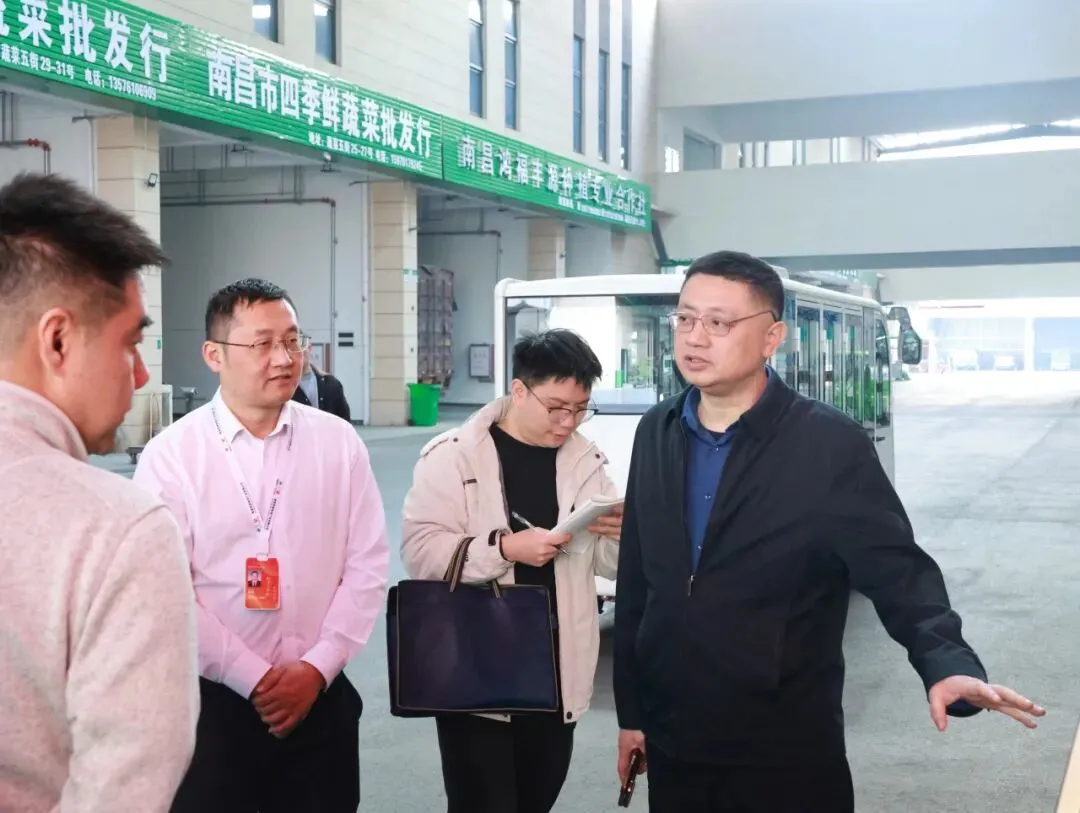 1月16日下午,为压实主体责任,打通数字化溯源监管“最后一公里”,江西省市场监督管理局餐饮食品安全监督管理处处长罗文斌带队到南昌洪旺智慧农批大市场开展食品安全专项检查,南昌市市场监督管理局食品经营安全监管科科长勒晔等陪同,南昌西部物流产业有限公司党支部委员、总经理余圣接待检查。本次检查重点聚焦“入场报备审核”、“溯源系统对接”等关键环节。
