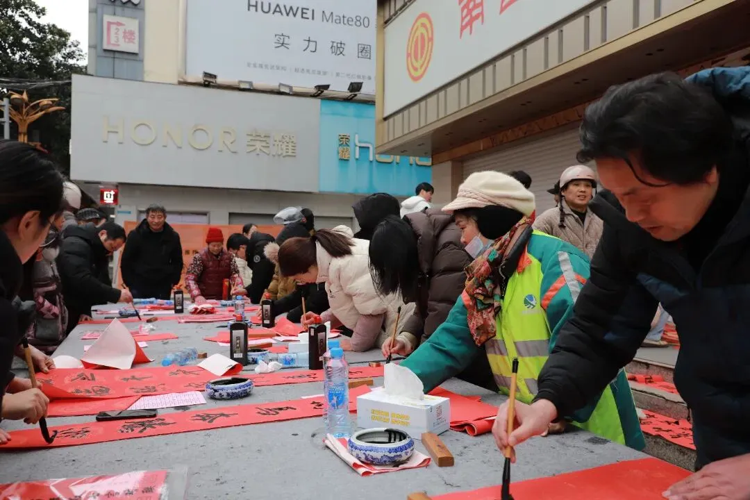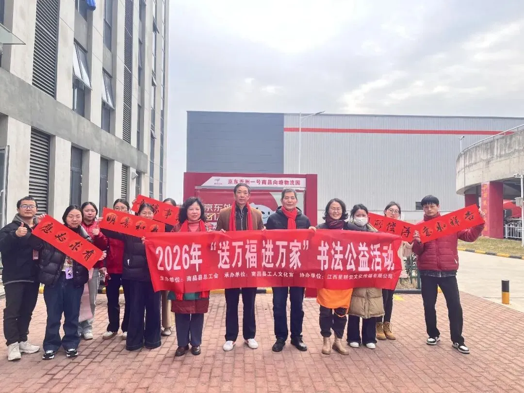 春节将至,年味渐浓,为大力弘扬中华优秀传统文化,丰富职工精神文化生活,切实把工会“娘家人”的温暖送到职工心坎上,南昌县总工会联合南昌县工人文化宫策划开展“送万福·进万家”书法公益活动,先后在南昌县工人文化宫、职工服务中心、京东物流园区举办3场专场活动,邀请10余位书法家为职工群众书写春联、赠送“福”字,以笔墨传情,以春联寄福,送上新春的美好期许与诚挚祝福。