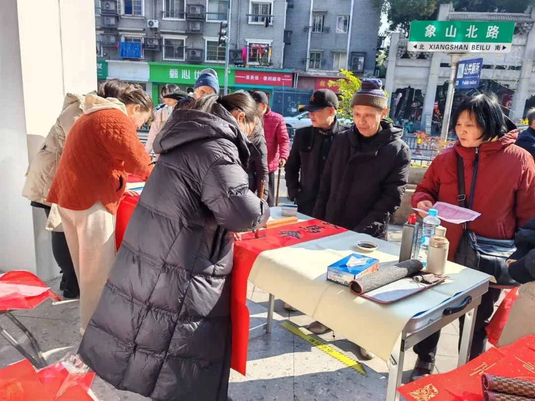 2月8日,在南昌市职工书屋前,省市书法家协会的专家们现场创作,以遒劲笔墨书写新春祝福,主题鲜明、寓意吉祥的春联和“福”字作品广受好评。活动现场吸引了大量职工读者及周边社区群众广泛参与,现场气氛热闹非凡,前来接福的读者和群众在观摩创作、交流传统文化的过程中,共话新年愿景,传递真挚情谊。