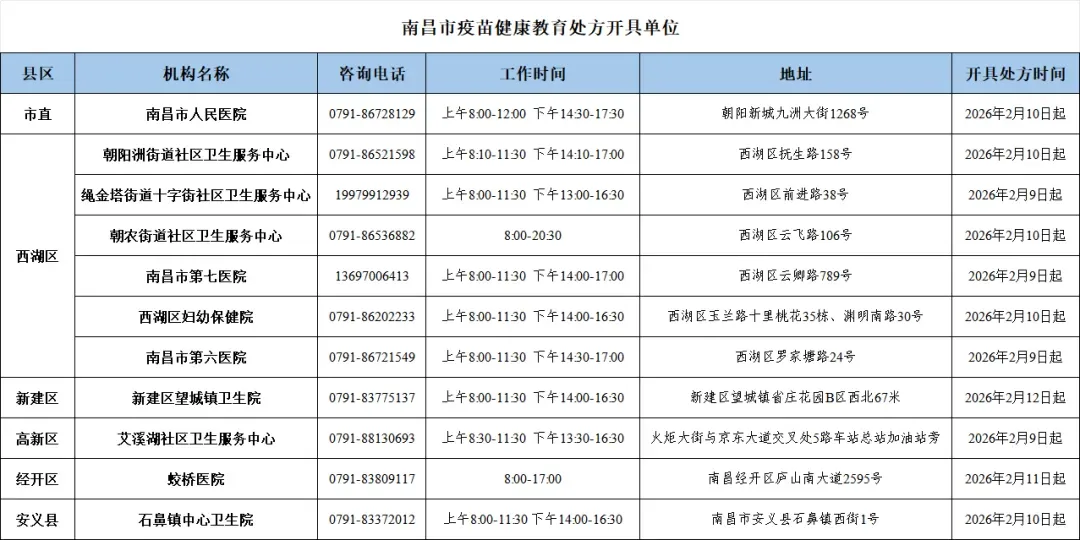 活动期间(即2026年2月9日起至10月31日),凭试点医疗机构开具的“疫苗健康教育处方”,在同一家医疗机构设置的接种门诊接种相应疫苗,免收当次接种服务费!详细流程可咨询试点单位。