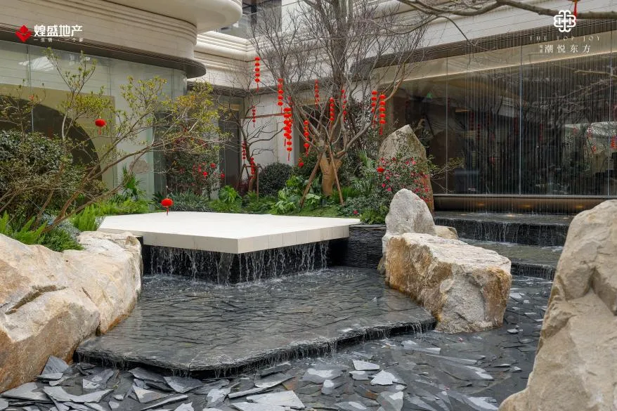超4万方当代东方意境园林,从辋川别业的画境中走来,以“三轴六境”礼序排布,将风雨游廊、下沉庭院、跌瀑溪景等元素自然串联,营造出静谧松弛的居住氛围。而这份对生活美学的至臻追求,更延伸到建筑与园境的每一处细节,项目以国际、经典的审美,臻选六项非标定制奢材,搭配月光米黄、西班牙珊瑚红、幻影蓝等20种天然奢石,将自然肌理与高端质感融入日常,雕琢每一寸高贵与雅致。