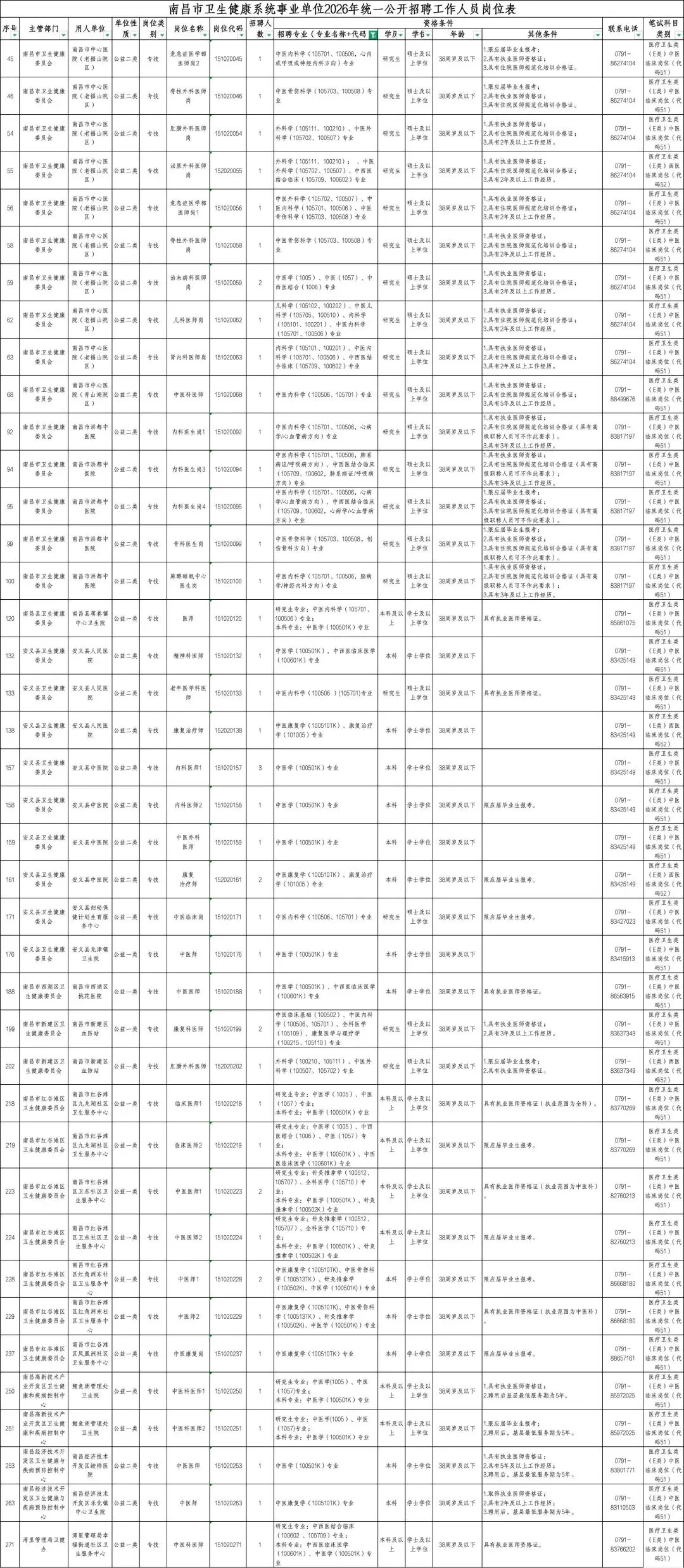 详见《南昌市事业单位2026年统一公开招聘工作人员报考指南》(附件3,以下简称《报考指南》)。