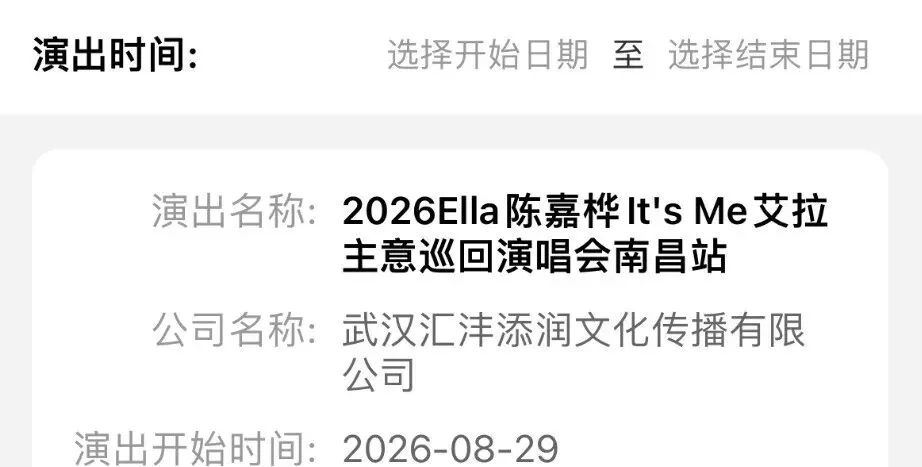 2026年Ella陈嘉桦its Me艾拉主意巡回演唱会南昌站