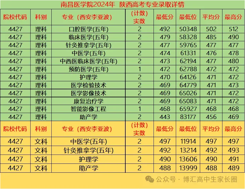 南昌医学院 2025年陕西,河南,河北,山西,甘肃5省各专业录取分数详情.
