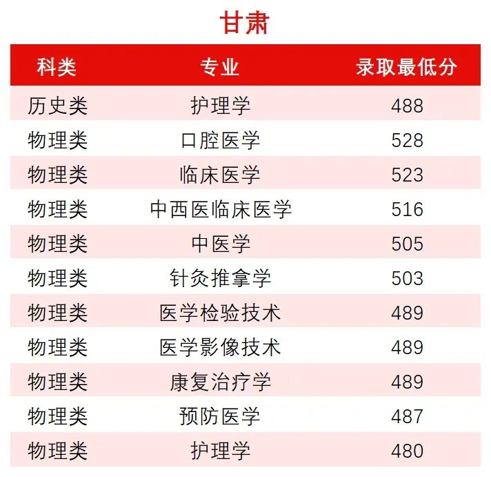 甘肃省专业录取详情