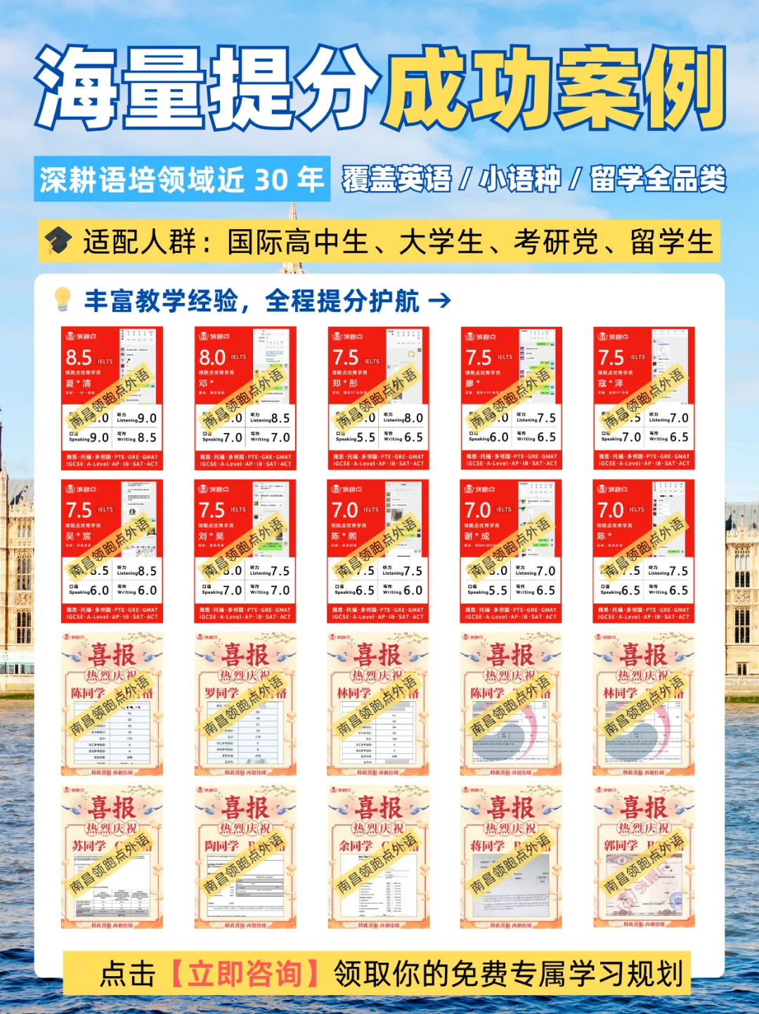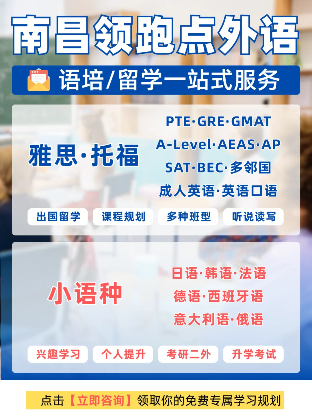 如果你也在为语言学习或留学申请而困惑,不妨立即咨询立思辰留学·领跑点外语的老师,领取免费专属学习规划,让南昌领跑点外语成为你成长路上的同行者,解锁属于自己的语言与留学新可能。