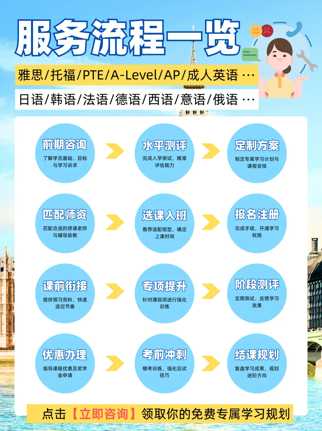 南昌领跑点外语的核心优势,在于“语培+留学”一站式服务模式,让学员无需在不同机构间奔波,从语言学习到留学申请,全程享受专业支持。