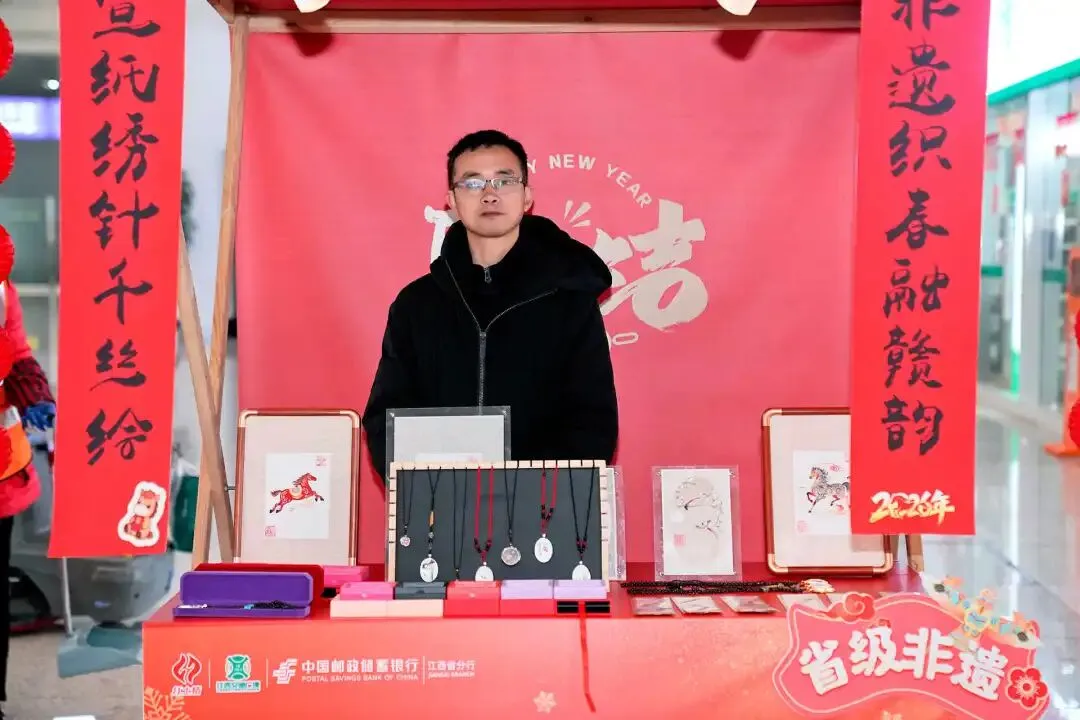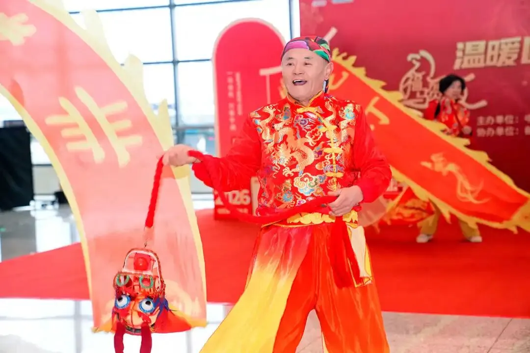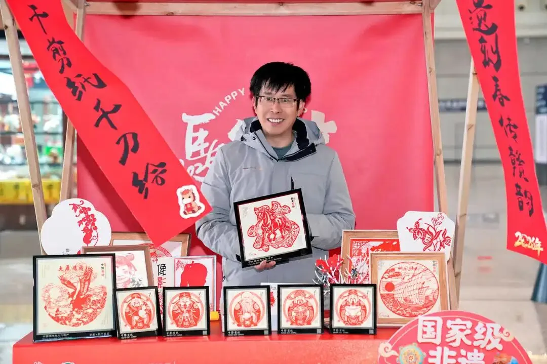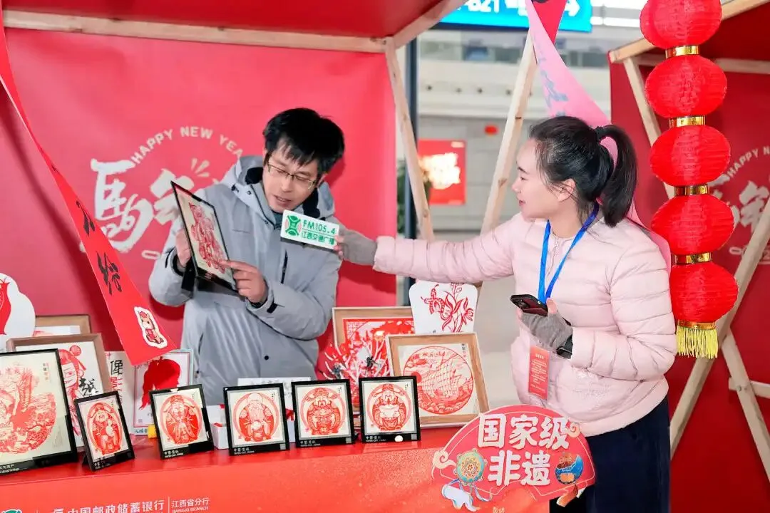 活动现场的非遗展区,集合了国家级非遗新干剪纸、省级非遗城南龙灯、宣纸刺绣,传统技艺在春运现场焕发光彩,让旅客在候车的同时,可以近距离对话匠人,触摸非遗的温度,感受不一样的新春年味。