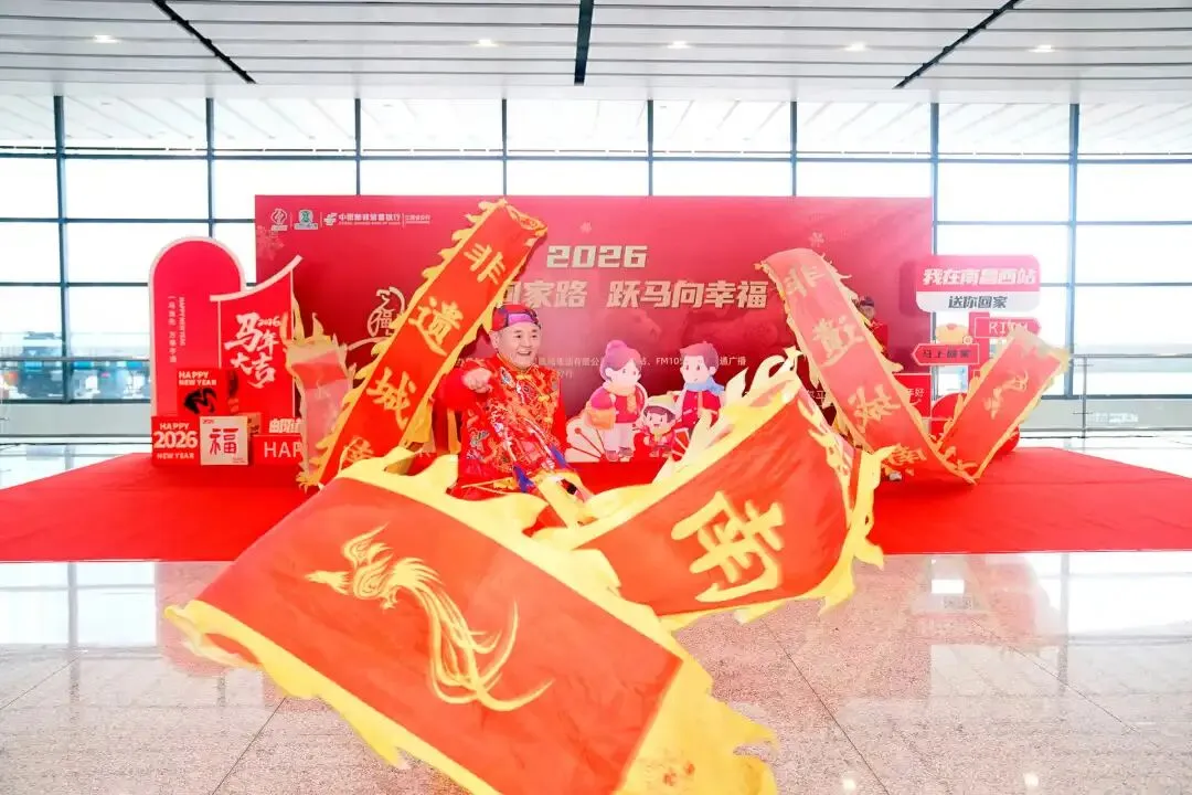 由FM105.4江西交通广播(江西应急广播)、中国铁路南昌局集团有限公司南昌车站、邮储银行江西省分行 联合打造的2026春运融媒体直播节目——《温暖回家路 跃马向新年》活动,2月10日(大年二十三)在南昌西站温暖启幕。