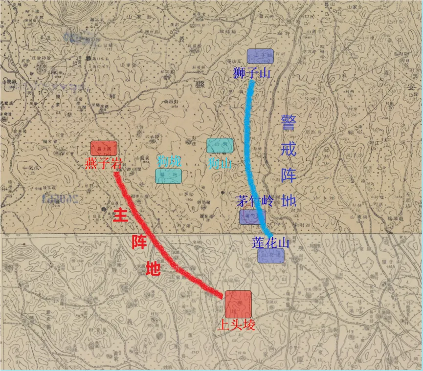 3月30日24时,第184师以一部占领莲花山、狮子山之警戒阵地,主力占领上头堎、燕子岩之线主阵地。