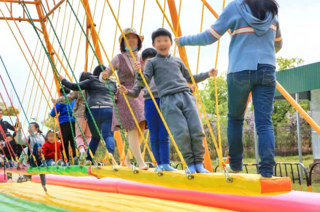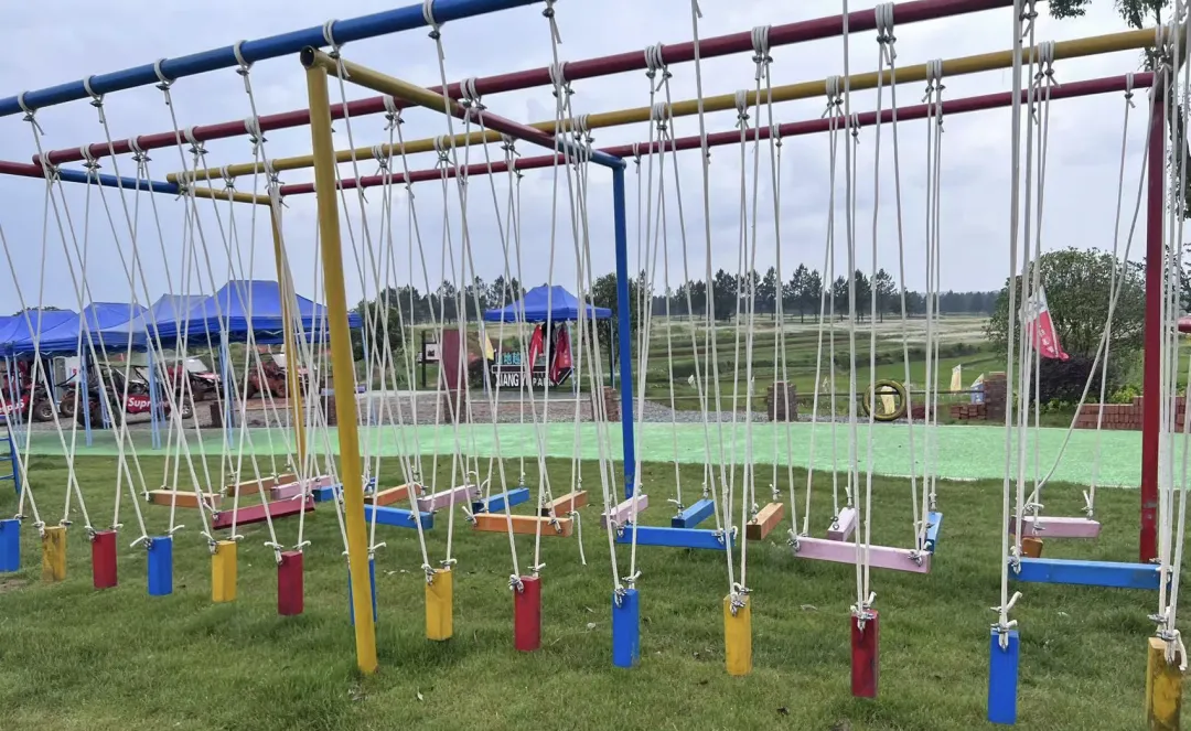 大片的草地上有秋千、跷跷板、攀爬架、滑索等15余种游玩设施不同年纪的孩子都玩得不亦乐乎