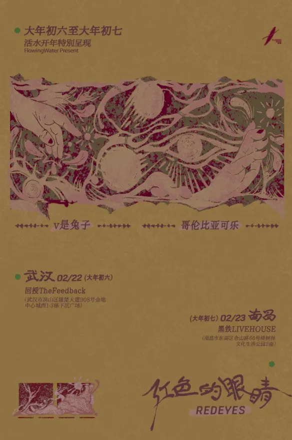 活动内容:2月14日20:00至23:00举办《情人节逃生计划:摇滚现场见》·罗琦专场,邀请罗琦、触大喜乐队;2月23日20:00至22:00举办「红色的眼睛」春节联合专场南昌站,邀请哥伦比亚可乐乐队、兔子乐队。