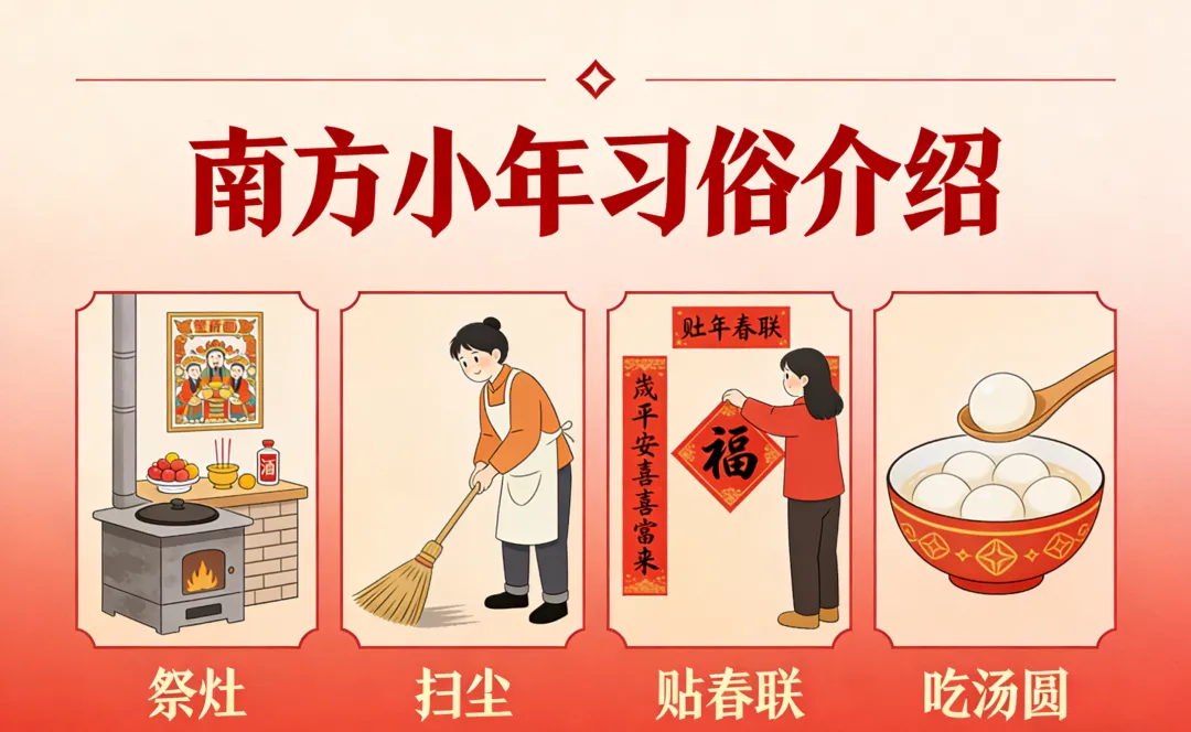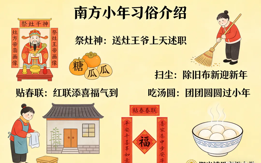 1. 掸尘扫房:“除陈布新”迎福气 “腊月二十四,掸尘扫房子”是南方小年最重要的习俗。这一天,家家户户都会进行彻底的大扫除,扫屋顶、擦门窗、洗厨具、清杂物,连墙角的蛛网、案几的灰尘都不放过。在南昌,老辈人说“掸尘”谐音“掸陈”,不仅是清扫环境的尘埃,更是要扫去一年的不顺与烦恼,寓意“除陈布新”,为新年腾出干净整洁的空间,迎接福气与好运的到来。2. 祭祀灶王:甜甜蜜蜜盼吉祥 灶王爷被称为“一家之主”,掌管着家庭的祸福吉凶。南方小年这天,人们会准备香甜的灶糖(麻糖、关东糖)、清水、料豆等祭品,祭祀灶王爷。南昌本地的灶糖多为麦芽糖制成,黏糯香甜,意在“黏住”灶王爷的嘴,让他上天庭向玉皇大帝汇报时,多说好话、少提过失,保佑全家来年平安顺遂、衣食无忧。如今,祭祀的仪式或许简化,但吃一块甜滋滋的灶糖,仍成为南昌人小年不可或缺的味觉记忆。3. 剪窗花、贴春联:红纸添喜扮新家 小年过后,年味愈发浓烈,家家户户开始为春节做准备。剪窗花、贴春联是南方小年的传统活动之一:红彤彤的窗花剪出国花牡丹、吉祥福字、瑞兽祥云,贴在窗上寓意“锦上添花”;提前写好的春联或福字贴在门框、大门上,瞬间为屋子添上喜庆氛围。在南昌的老街巷里,还能看到老手艺人现场写春联、剪窗花,笔墨间的年味与市井烟火气交织,成为冬日里最温暖的风景。4. 备年货、腌腊味:舌尖上的团圆预告 小年也是备年货的“启动日”。南昌人会趁着天气晴好,开始腌制腊肉、腊肠、咸鱼,挂在阳台或屋檐下,油光锃亮的腊味在阳光下晾晒,香气弥漫整条街巷;同时,采购糖果、瓜子、坚果、春联、灯笼等年货,为除夕夜的团圆饭和新年招待客人做准备。这些舌尖上的筹备,不仅是为了满足味蕾,更是对团圆的期盼——每一份腊味、每一袋糖果,都藏着“阖家团圆、丰衣足食”的美好心愿。
