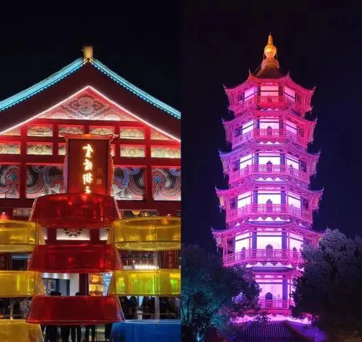 绳金塔老,始建于宋,明清多次修,塔影落在水里,周边小吃一排排,晚上更有味。