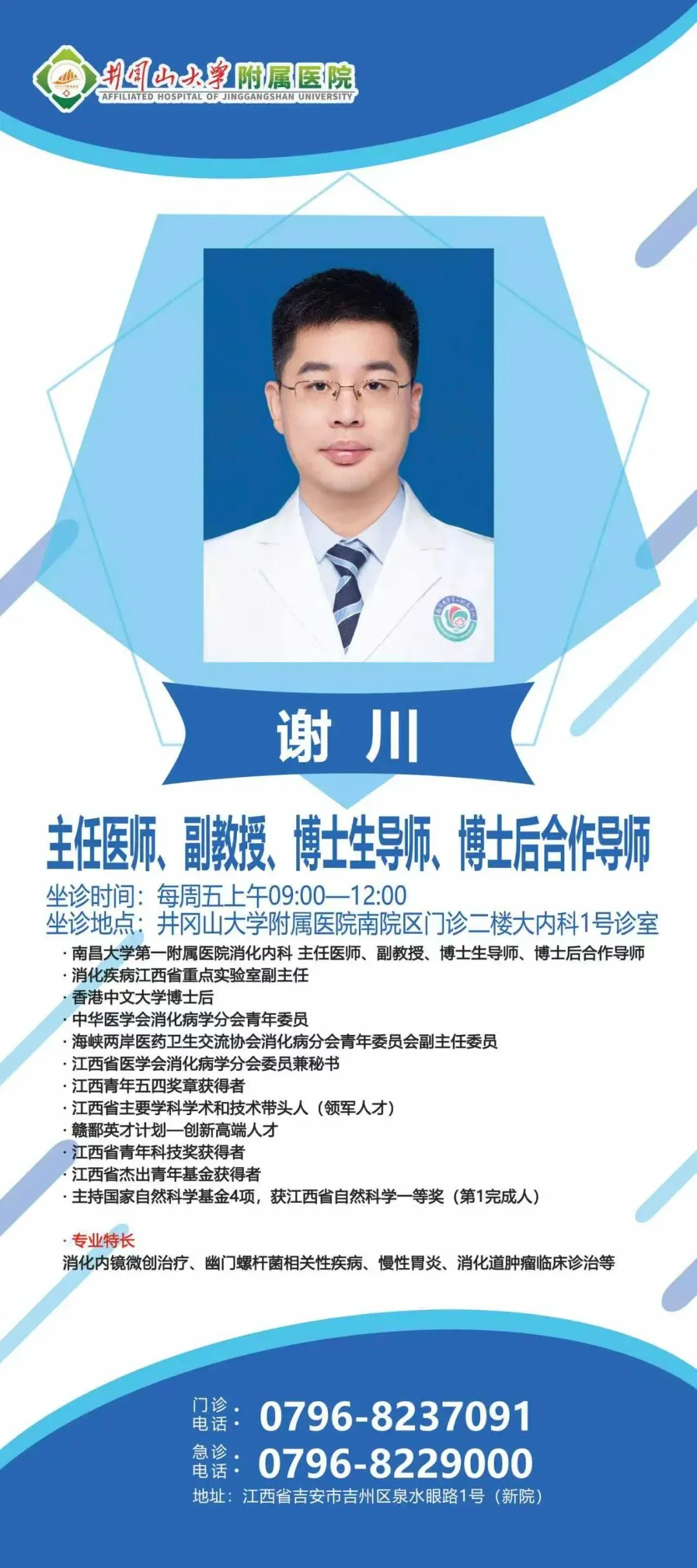 名医坐诊丨南昌大学第一附属医院消化内科主任医师谢川副教授将来我院坐诊