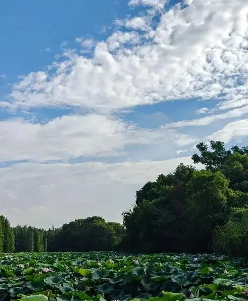 想清净去象湖,木栈道穿苇海,荷叶挨着波,桥上一站就不急。