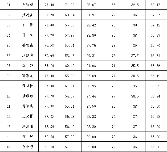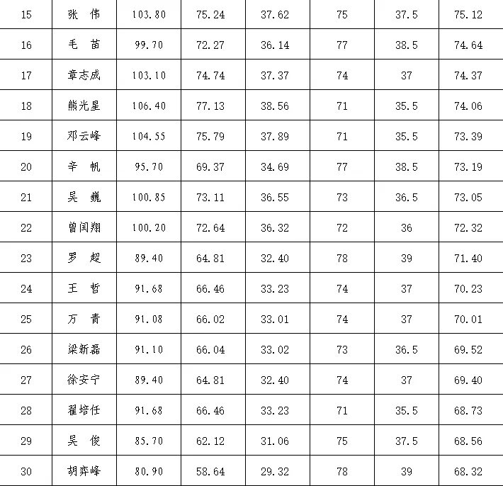 备注:综合成绩分数相同的,按照职务级别高低,军(警)衔高低,职务任职时间先后,军(警)衔任命时间先后依次确定前后排序。