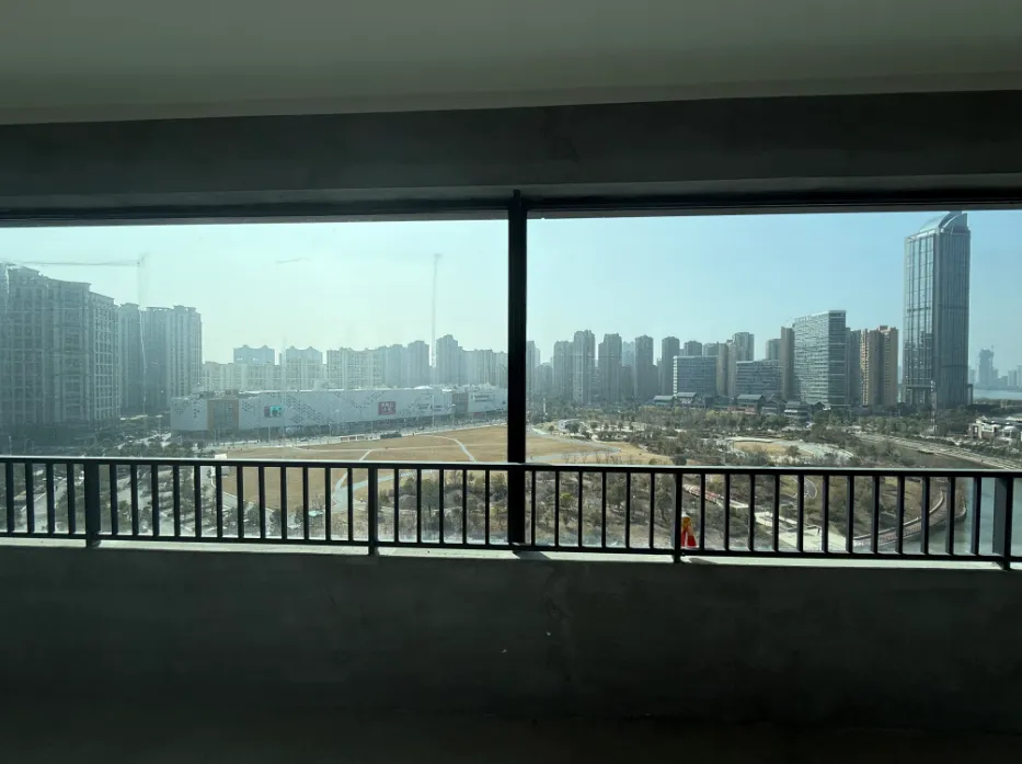 我们进去看了一套,发现虽然阳台是落地玻璃,但是玻璃前边还有一道带着栏杆的反坎。