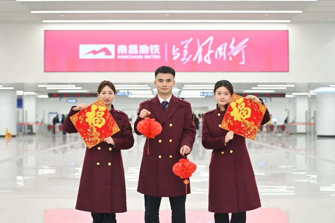 年味不止于视觉的点缀,更藏在细致入微的服务中。节日期间,南昌地铁工作人员始终坚守岗位,以饱满的热情、亲切的笑容迎接每一位乘客。一句句“新年快乐”“出行平安”的真诚祝福,一次次耐心的路线指引、贴心的行李帮扶,承载着南昌地铁人对市民乘客的美好祝愿,让这匆忙的旅途也充满了人情温度。