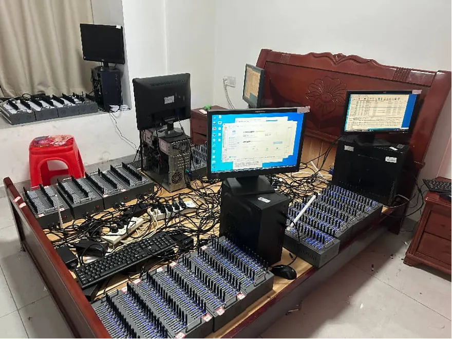 2月3日,江西联通接到集团公司推送的涉诈异常通信线索后,公司反诈专班立即联动网络部门,通过后台技术手段精准锁定涉诈基站及异常码号在线状态,初步判定该异常通信行为,疑似为依托“猫池”设备运作的短信接码窝点。