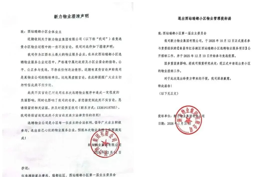 一场由西站瑞都业委会主导的物业选聘,却在投票结果出炉后出现戏剧性反转,得票第一的新力物业突然弃标,引发各方质疑。