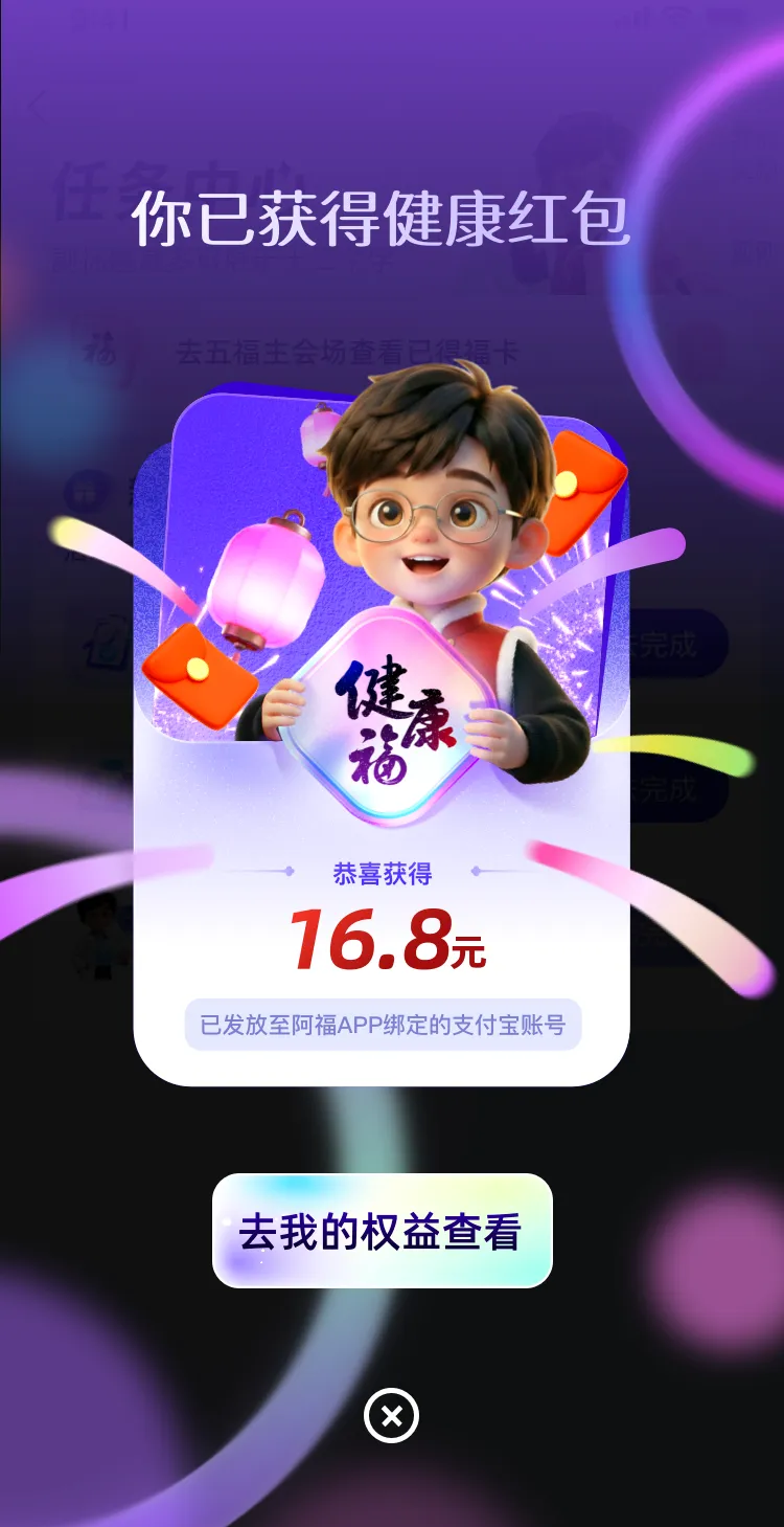 2月11日—2月12日期间,新注册的用户下载并打开蚂蚁阿福APP,参与健康话题互动,能领16.8元支付宝无门槛红包🧧,支付宝线下付钱就能用!关键是,阿福这个AI真的很适合爸妈用,能帮大忙。