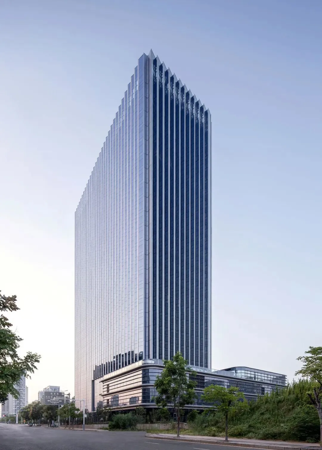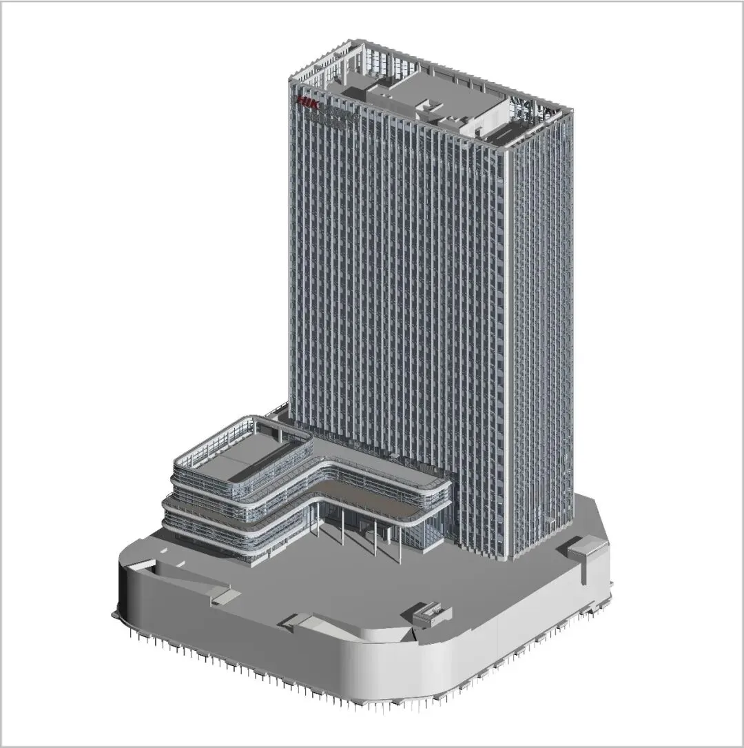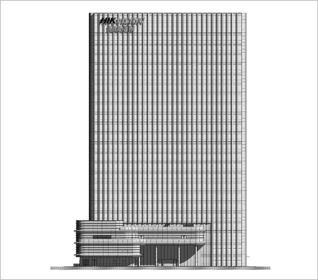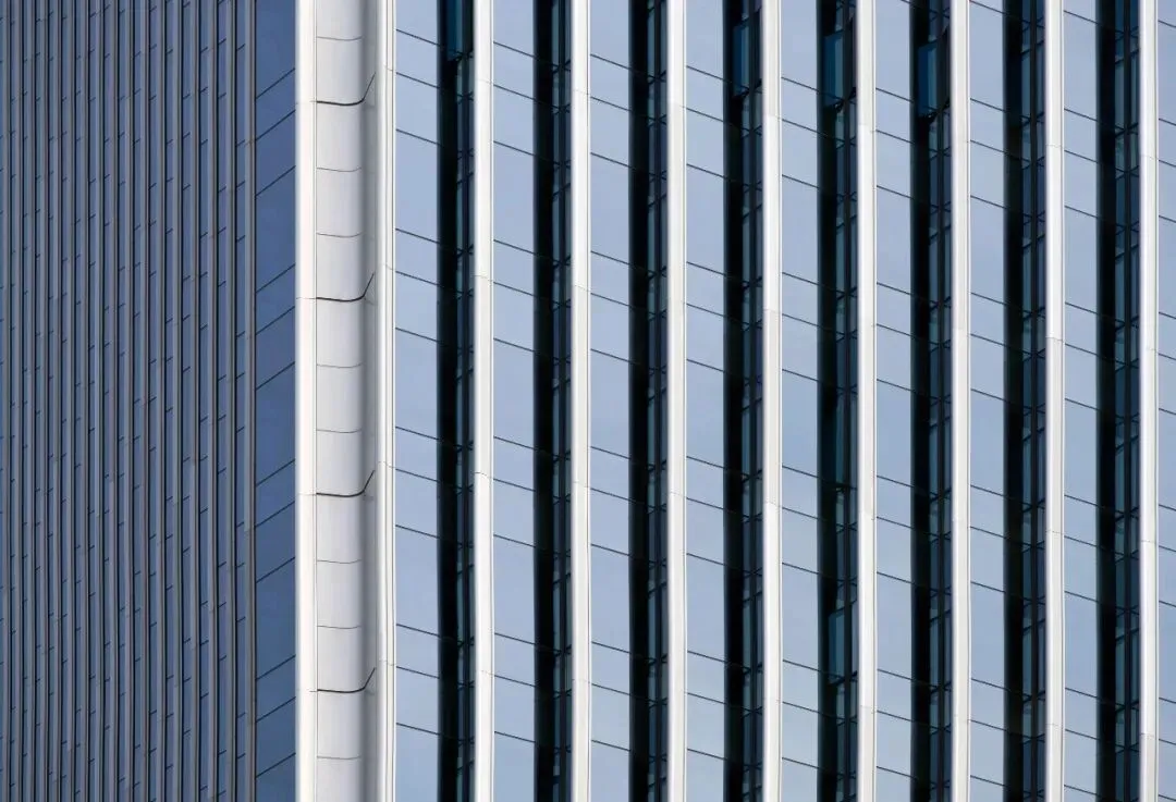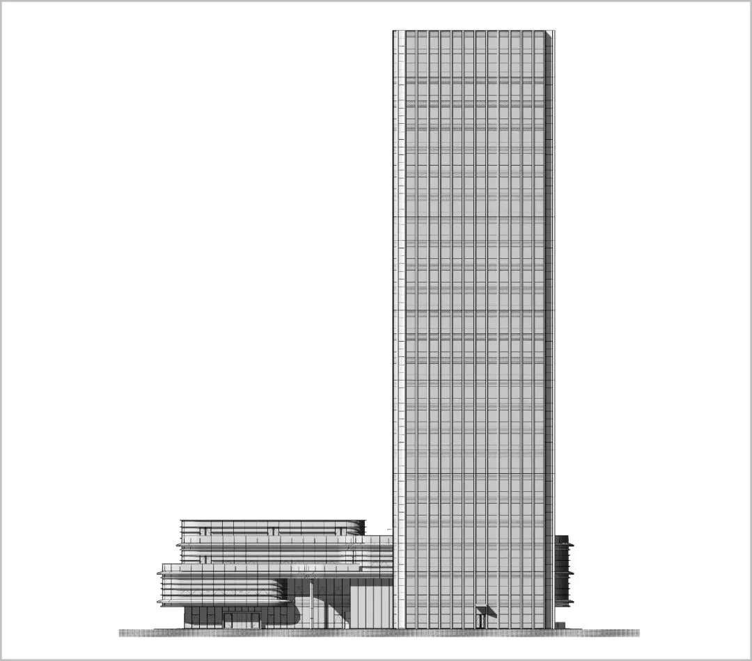 立面设计是建筑的无声语言。主塔楼纵向的线条强化了形体的挺拔与稳重,与之咬合的裙房,则通过横向的肌理形成对话与对比。这一纵一横间,勾勒出理性、高效又不失动态的现代科技企业形象。