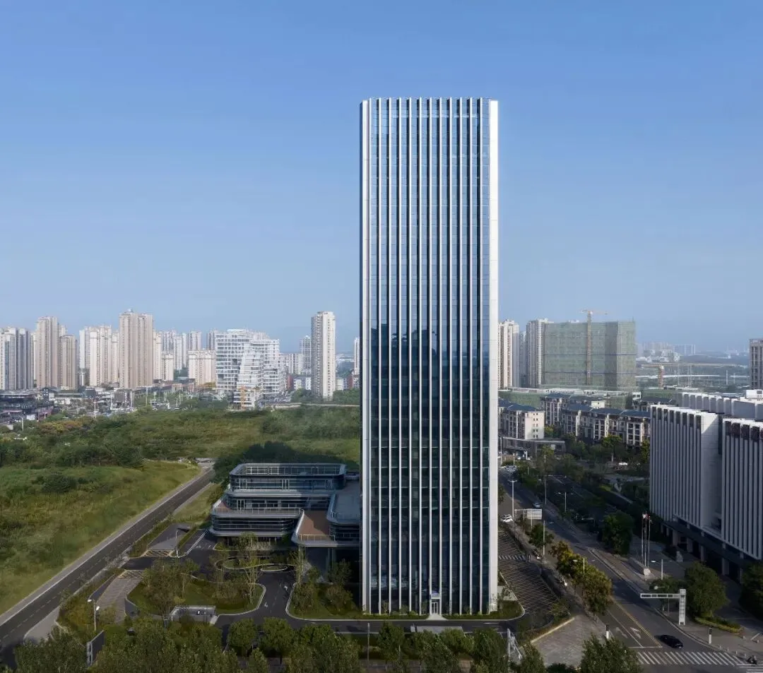 当高铁驶近南昌西站,一座挺拔而简约的现代建筑映入眼帘,它不仅是城市的新地标,更是一张企业面向未来的创新名片。这就是由浙江大学建筑设计研究院(UAD)倾力设计的海康威视南昌科技园。这座总面积约7.6万㎡的园区,坐落于红谷滩新区门户位置,集总部办公、研发创新、展示体验与配套服务于一体,已成为企业在江西省的战略支点与形象窗口。