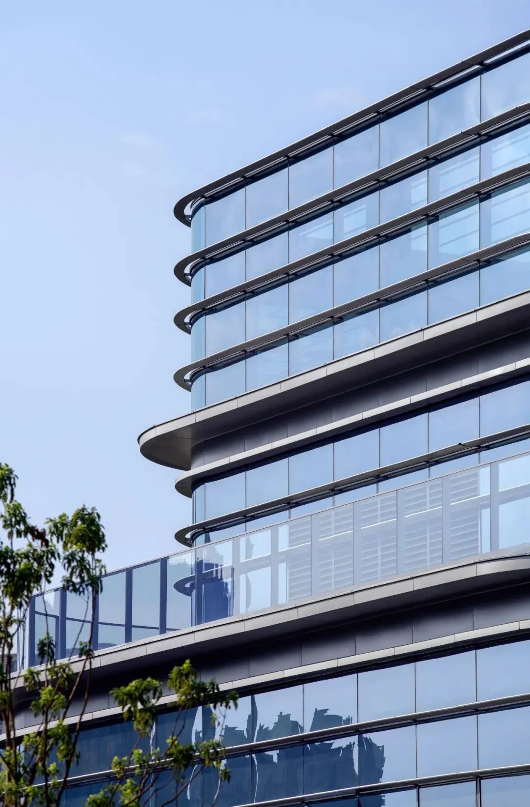 裙房的水平铝板飘板,既是精致的遮阳构件,也构成了建筑舒展的韵律。入口处醒目的悬挑雨棚与入口玻璃中庭,则共同塑造出极具辨识度与仪式感的抵达体验。