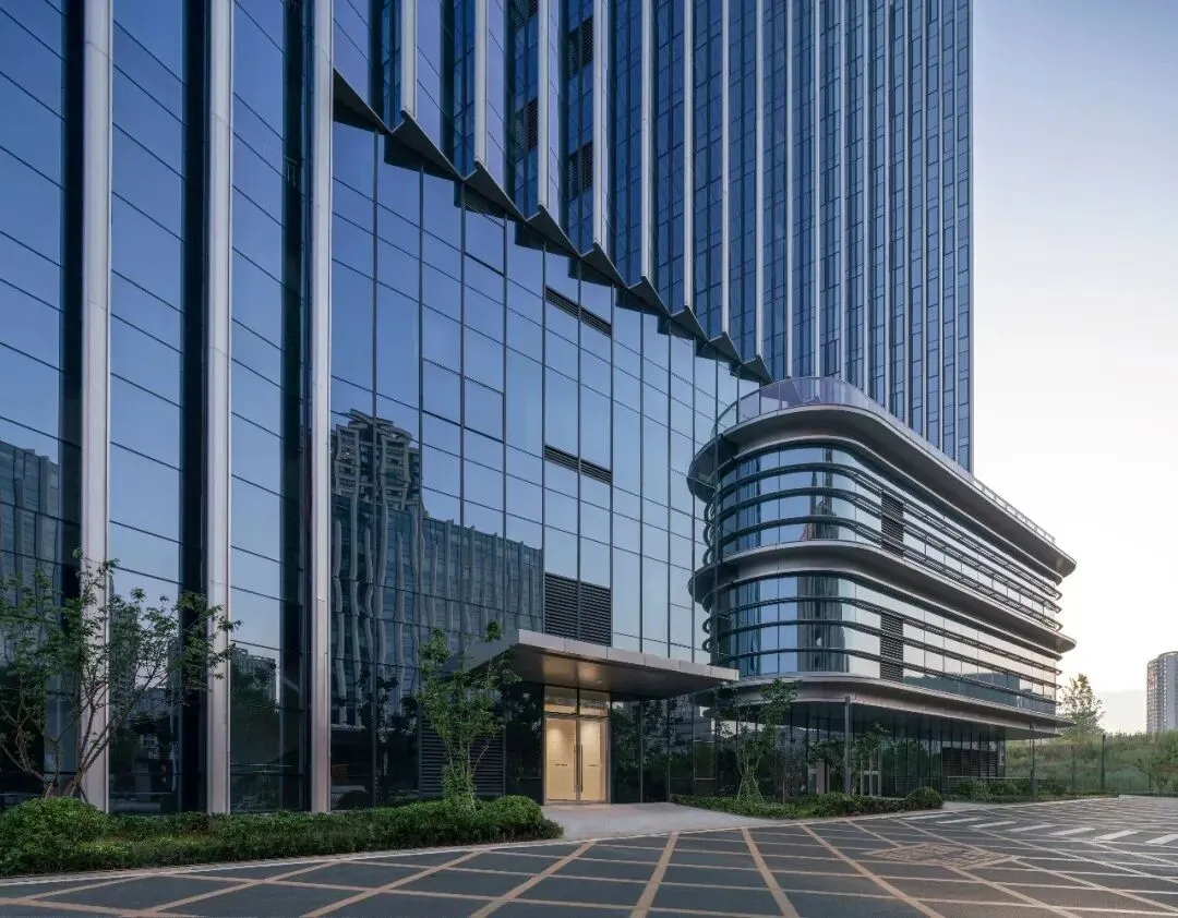 项目首先回应了其独特的场地基因。面对来自高铁站方向的主要人流,建筑以完整、自信的姿态坦然呈现。塔楼与裙房巧妙错动,形成南低北高的优雅轮廓,不仅最大化确保了内部办公空间的开阔视野与充沛采光,更以面向东南侧的开放界面与景观花园,向城市传递出友好、开放的姿态。