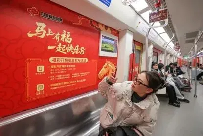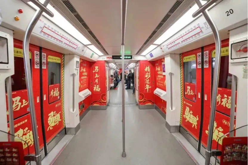 作为南昌的交通主动脉,南昌地铁1号线承载着千万人的出行期盼,更是新春佳节里人们奔赴团圆的重要通道。当整洁的地铁列车在地下隧道中平稳穿梭,车厢内的江西福彩马年公益主题广告以中国红为主色调,搭配金色福彩元素与骏马剪影,色彩明快、充满新春气息与活力的装饰风格,既贴合马年新春的喜庆氛围,又彰显公益的温情底色。