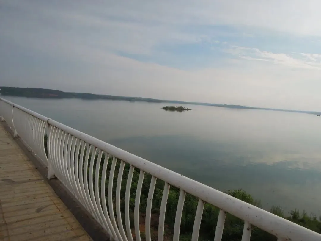 欲乘夕照观山景,湖边流连日已沉。暮霭四合天地浑,车灯相连银蛇行。疑是星子从天洒,灯光点点山落星。悬崖让车曾惊魂,车载亲人不敢声。