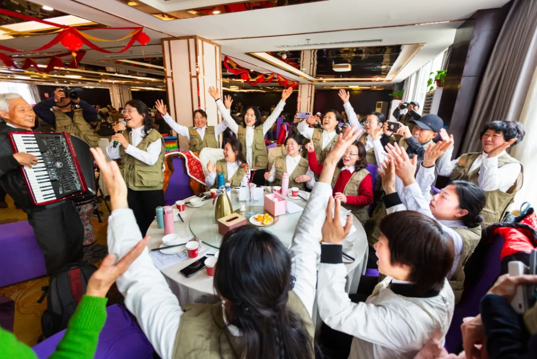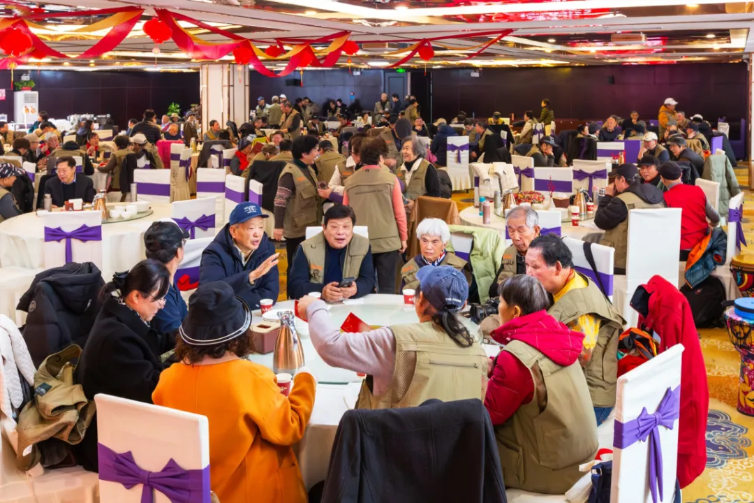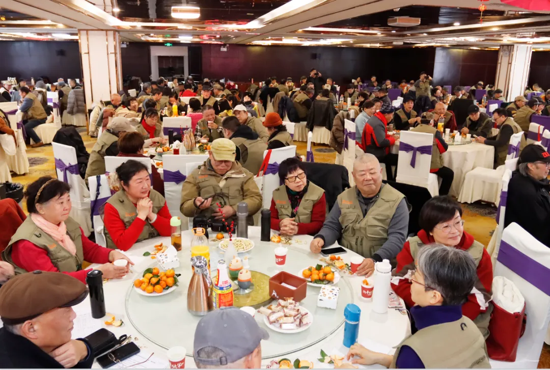 上午十点,一批批会员从奥体中心站被接驳车送到会场,有序走完领伴手礼、抽奖券和摄影背心的流程后,便围桌话旧。浓浓的会员情在席间流动,他们畅谈过去,相约未来,共度新年。